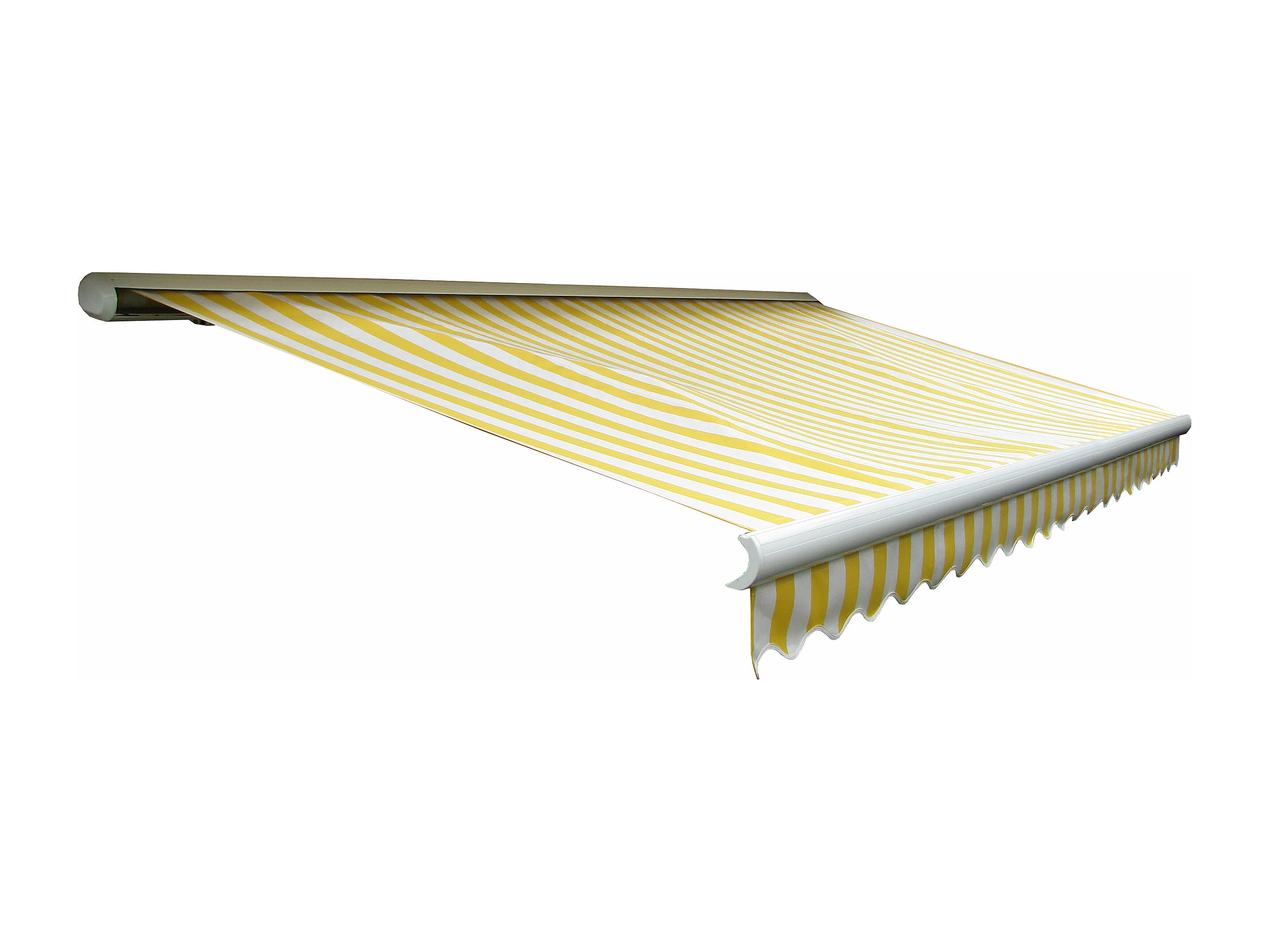 Kassetten-Markise H124 mit Volant, Polyester Gelb/Weiß