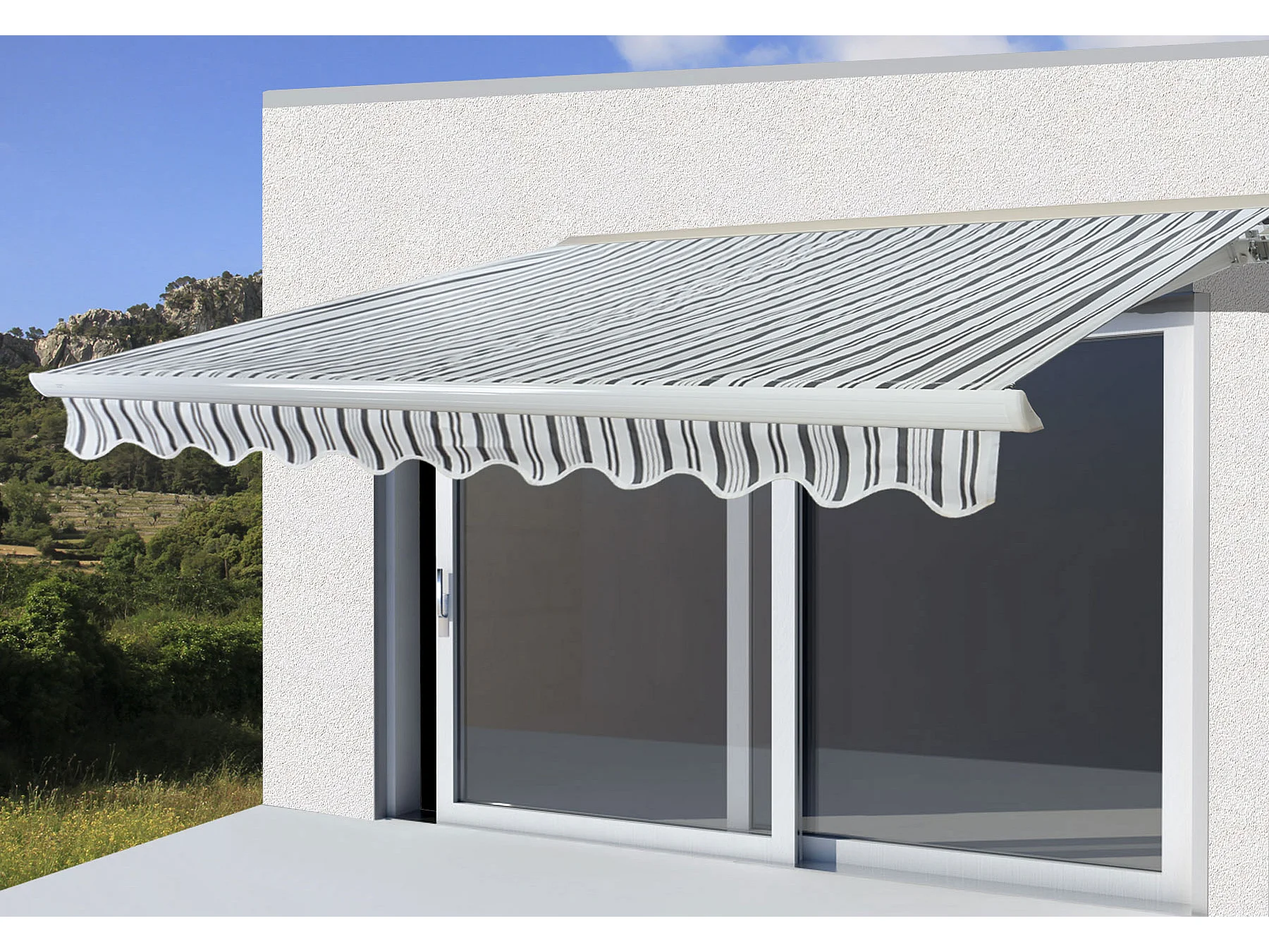 Kassetten-Markise H124 mit Volant, Polyester Grau/Weiß
