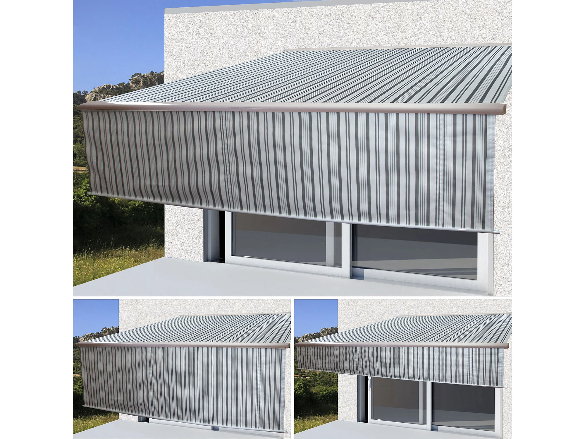 Kassetten-Markise H124 Volant ausfahrbar, Polyester Grau/Weiß
