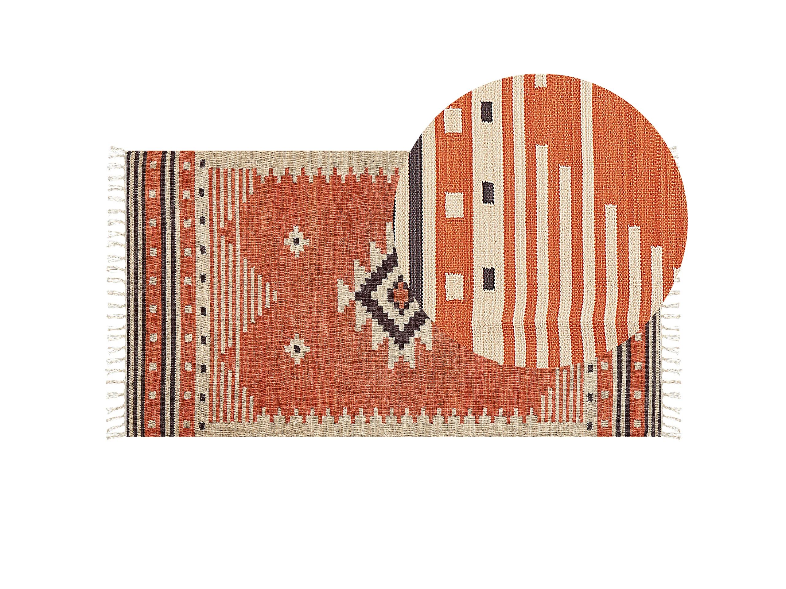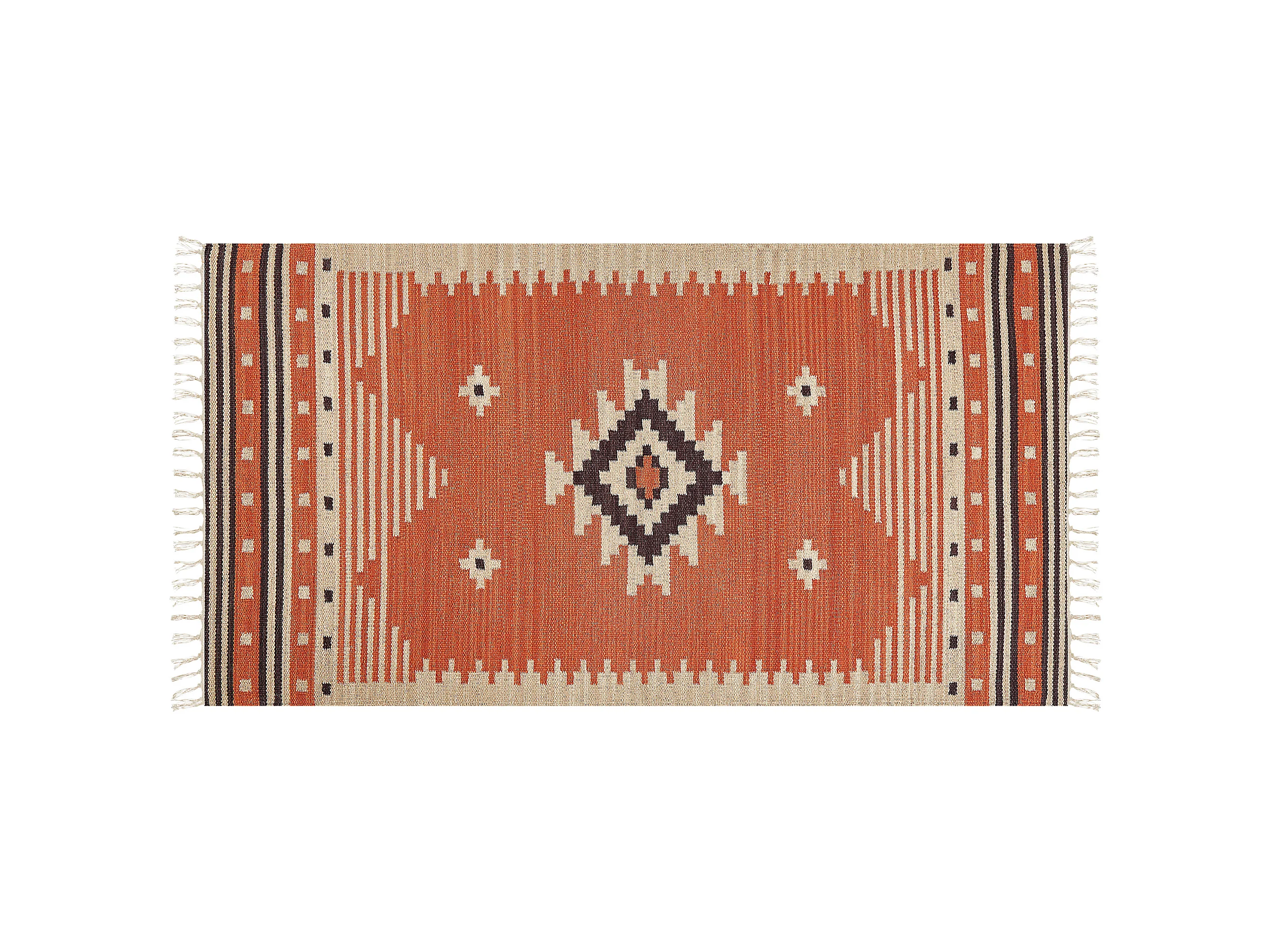 Kelim-Teppich Baumwolle orange 80 x 150 cm handgewebt geometrisches Muster Gavar
