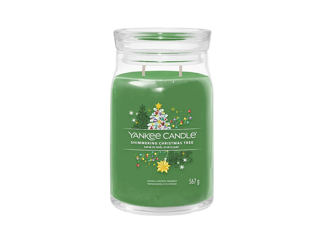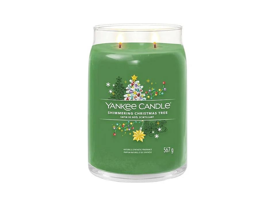Kerze im großen Glas, Shimmering Christmas Tree, grün 567 gr, Signature