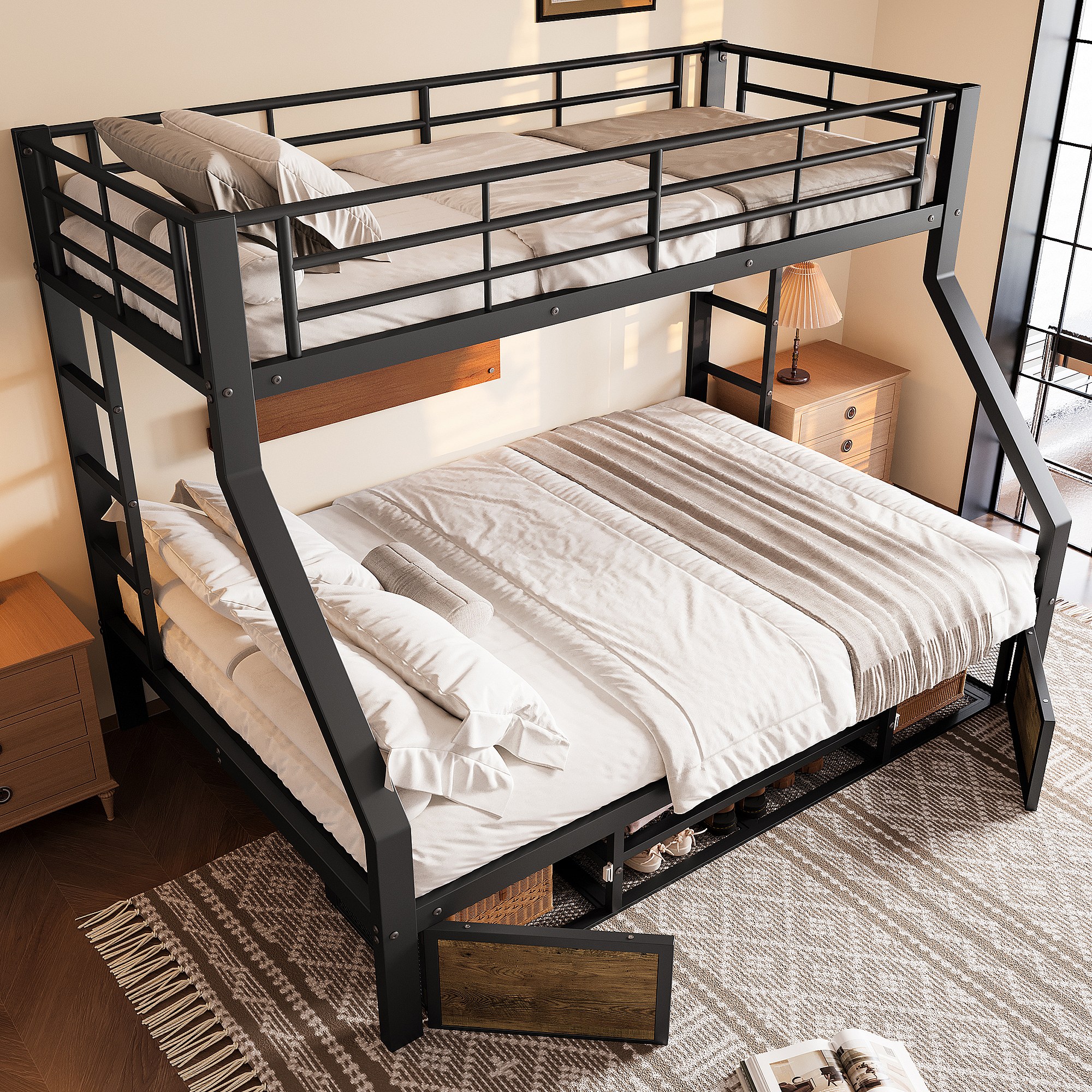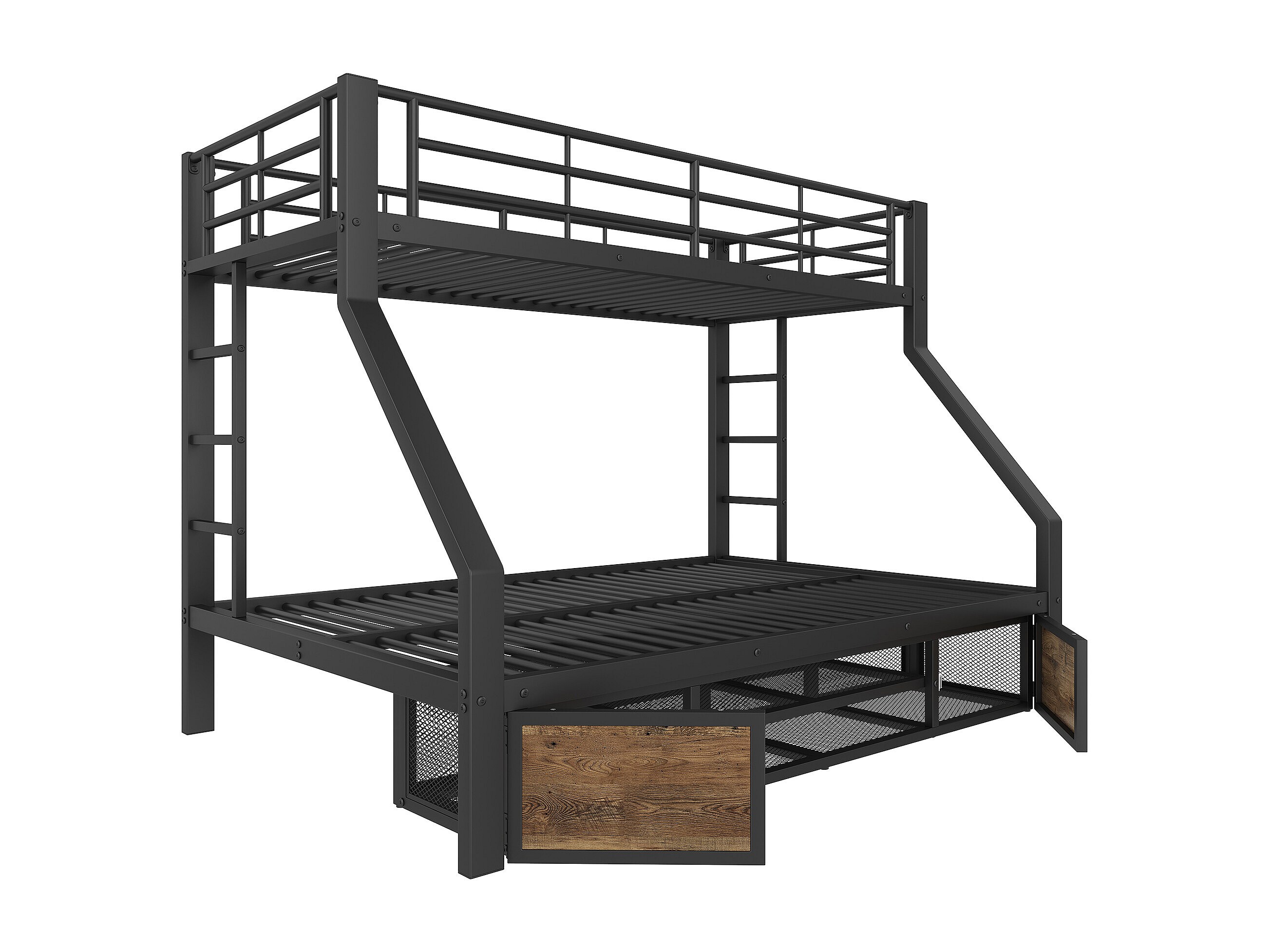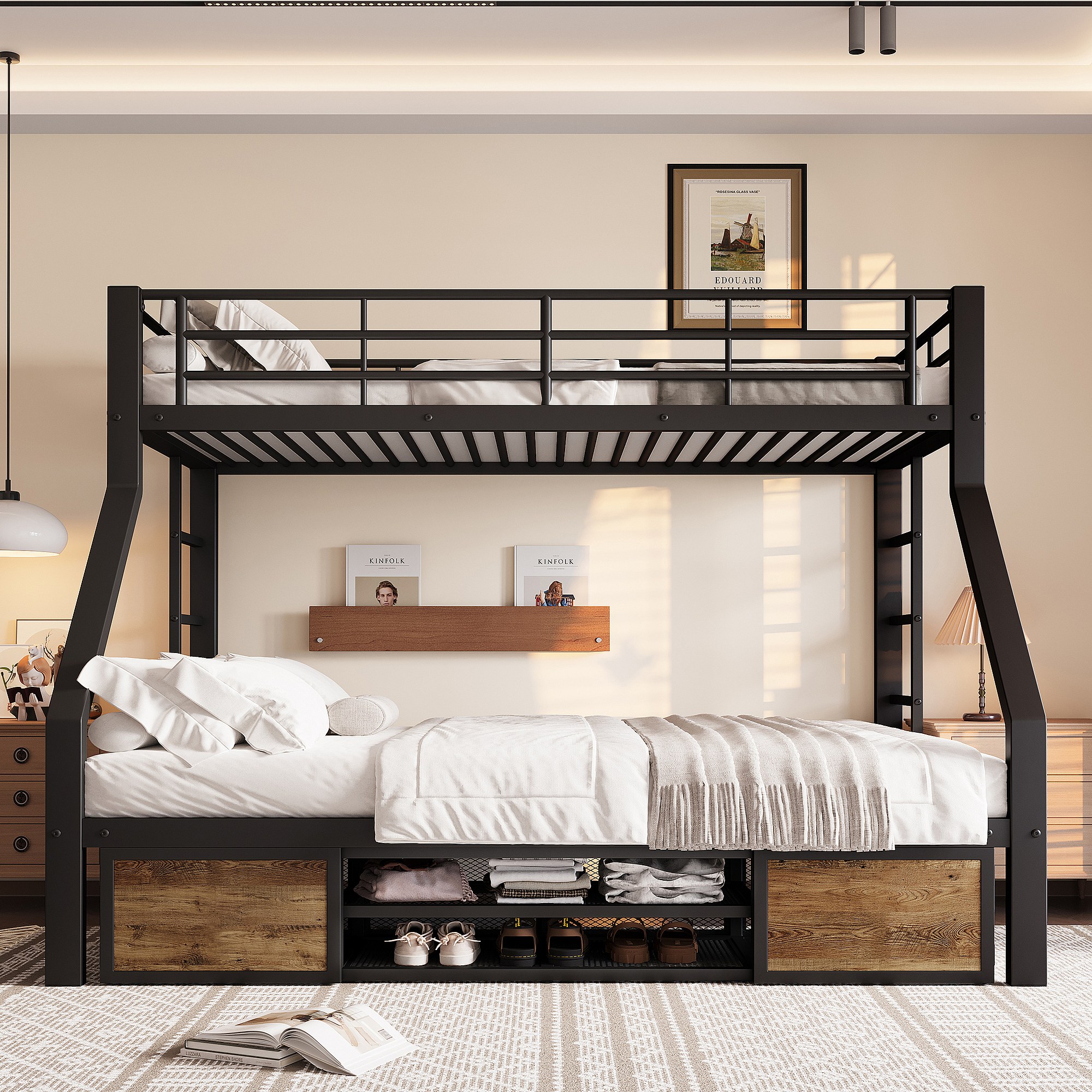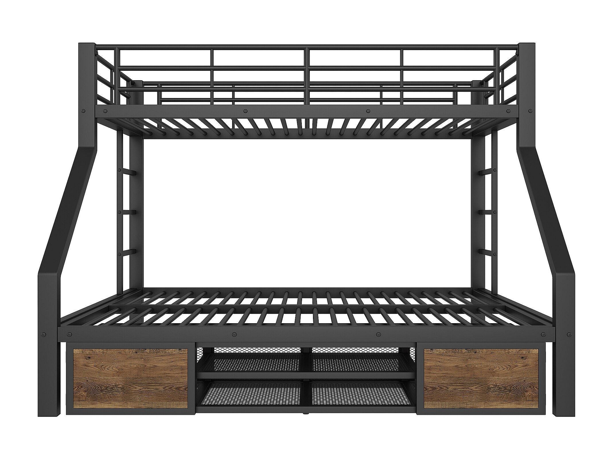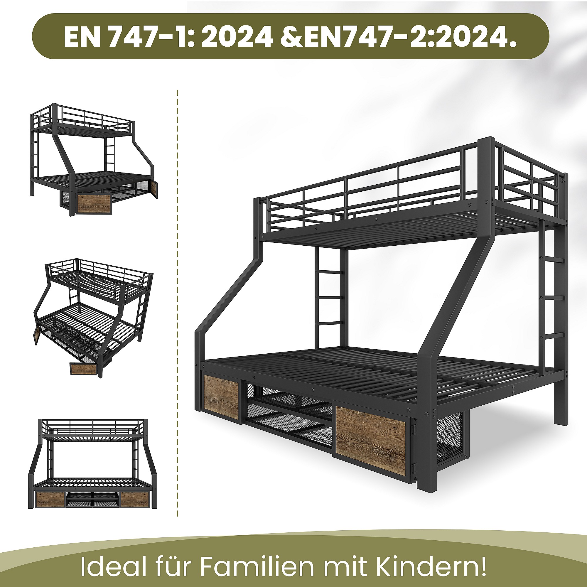 Kinder-Etagenbett - 90 x 200 cm + 140 x 200 cm - mit Schuhschrank + Stauraum - Metall - schwarz