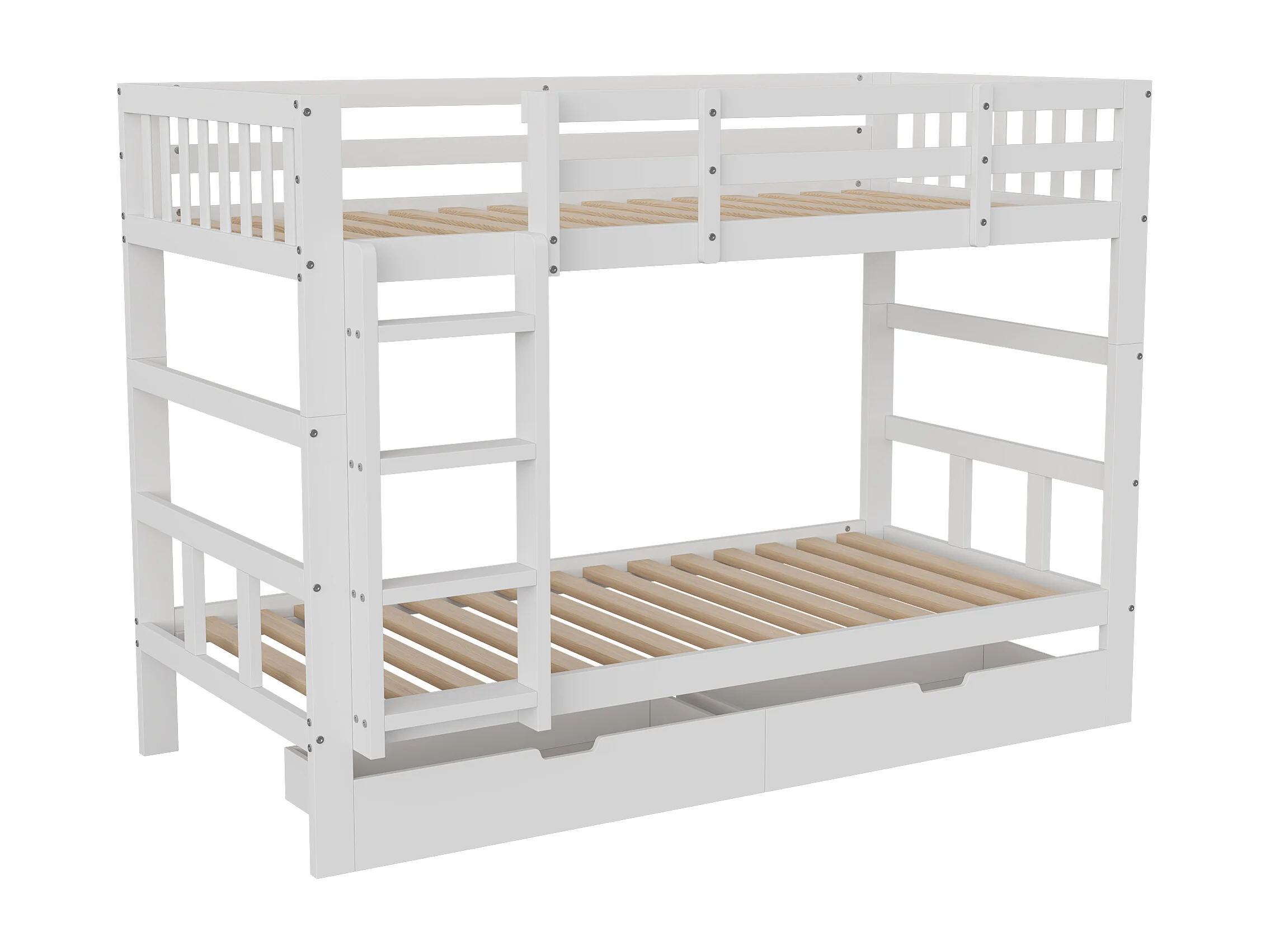 Kinder-Etagenbett 90×200 cm aus Massivholz mit Schubladen – in 2 Einzelbetten teilbar