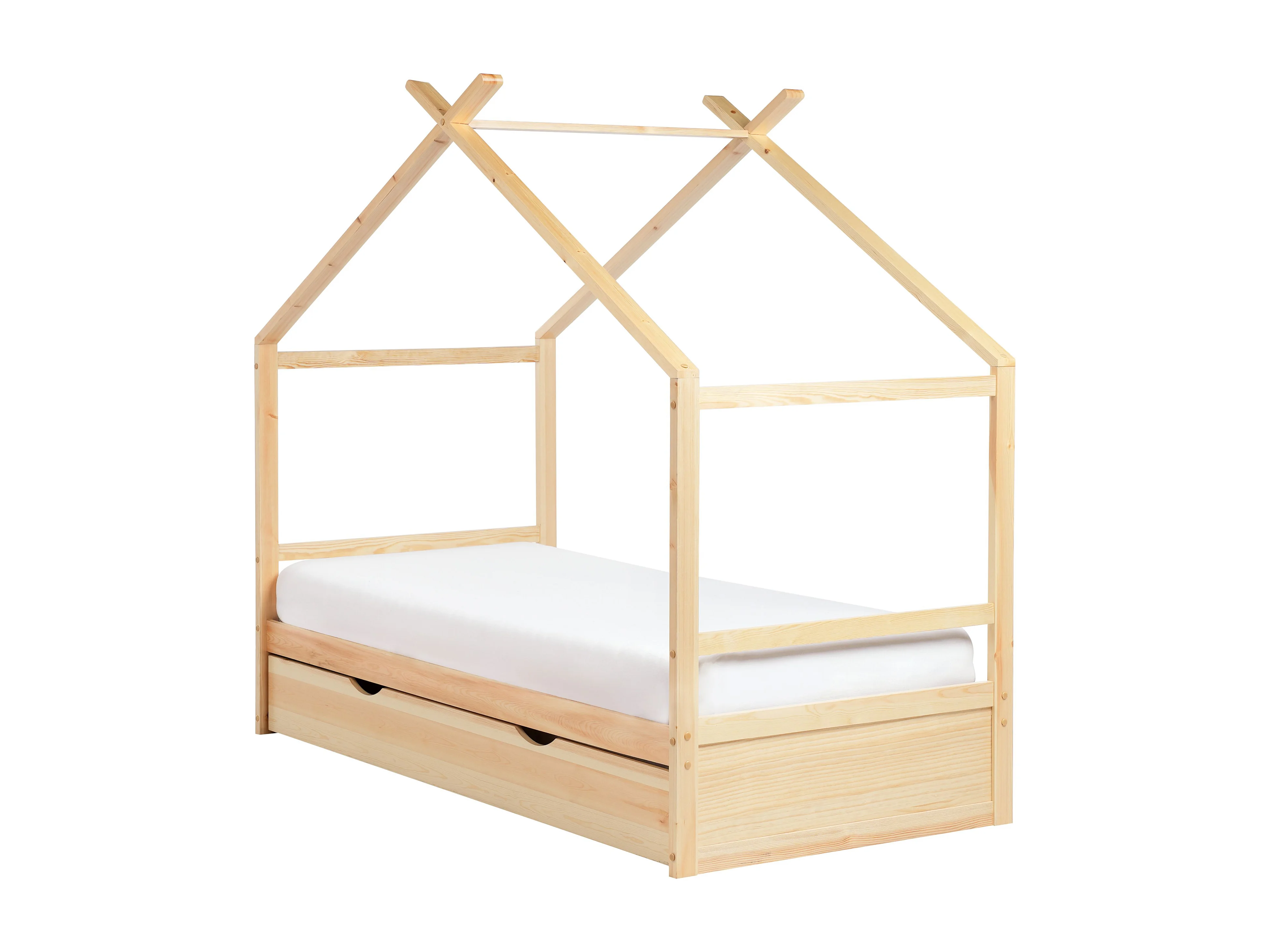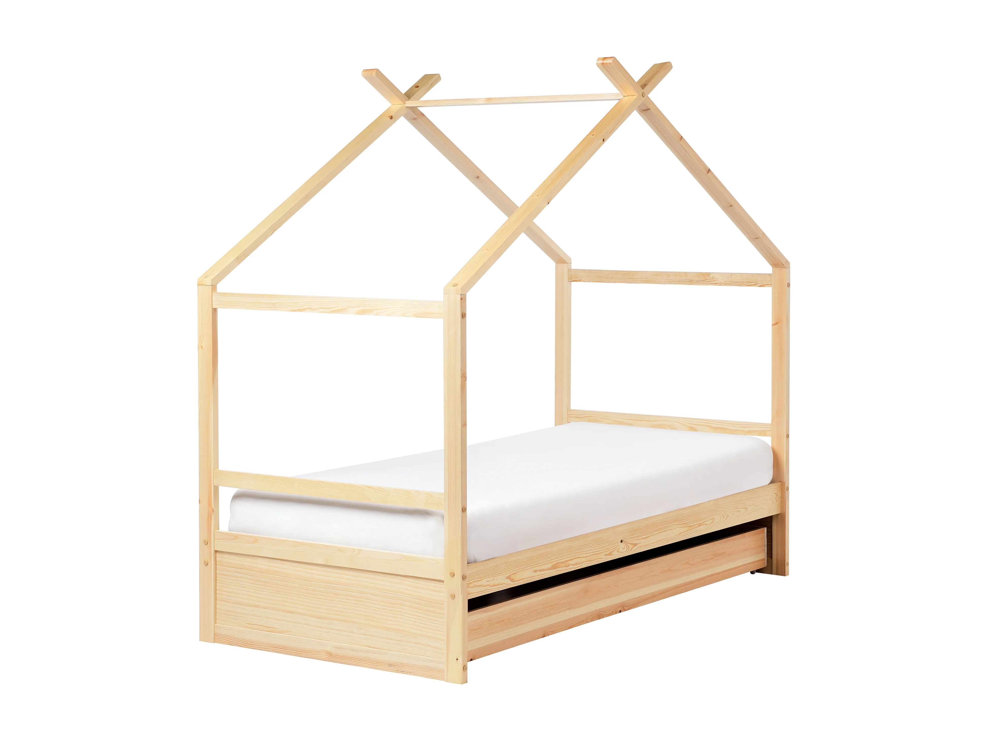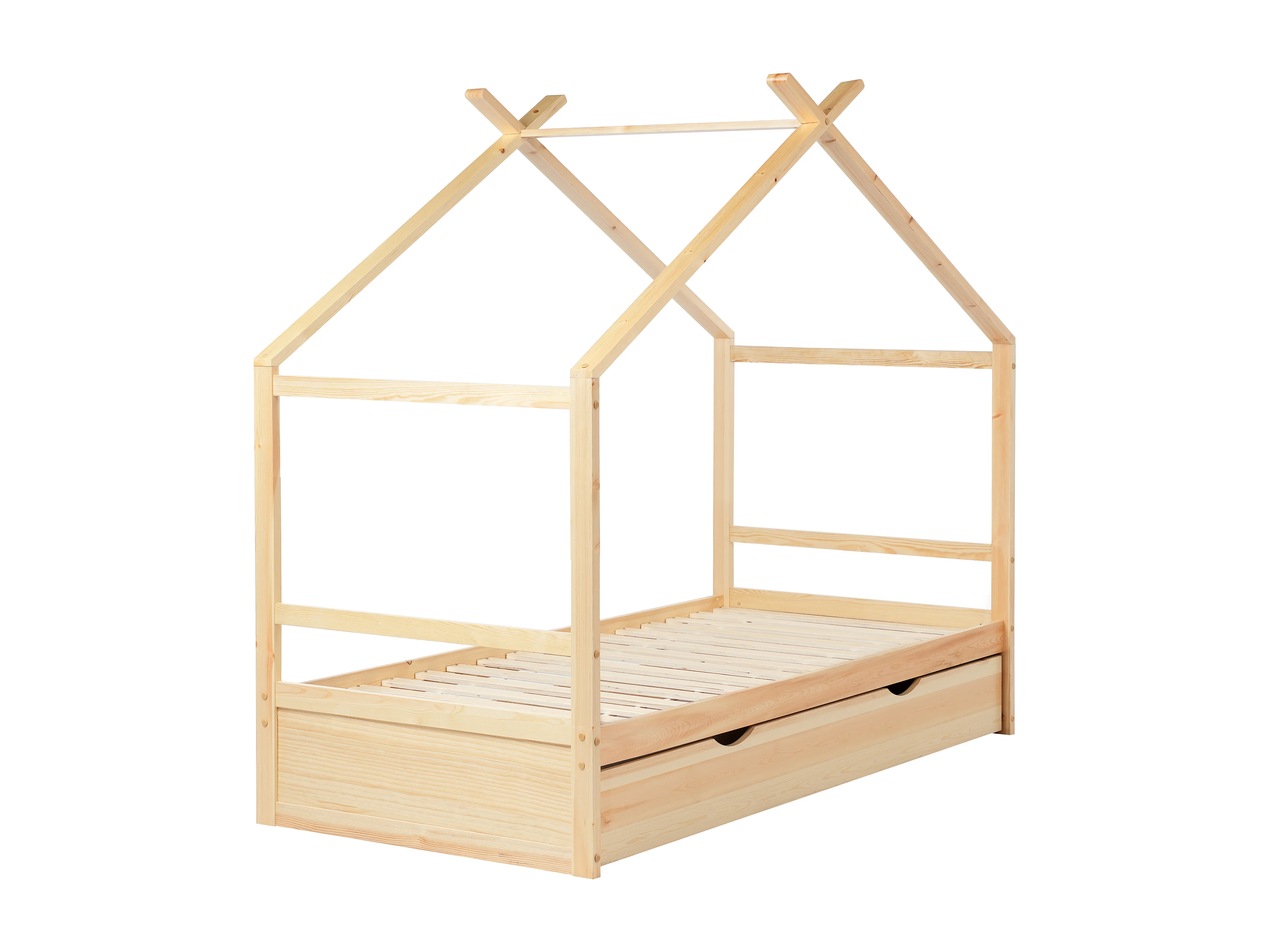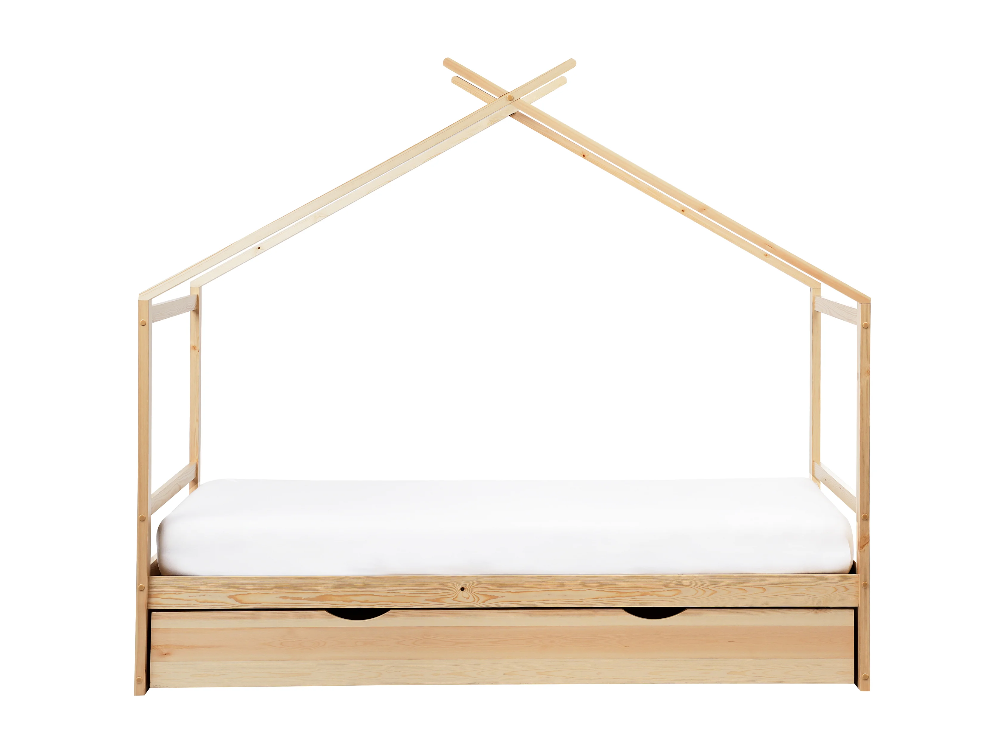 Kinder-Hausbett mit Stauraum Kiefernholz hellbraun Lattenrost 90 x 200 cm ORGEVAL