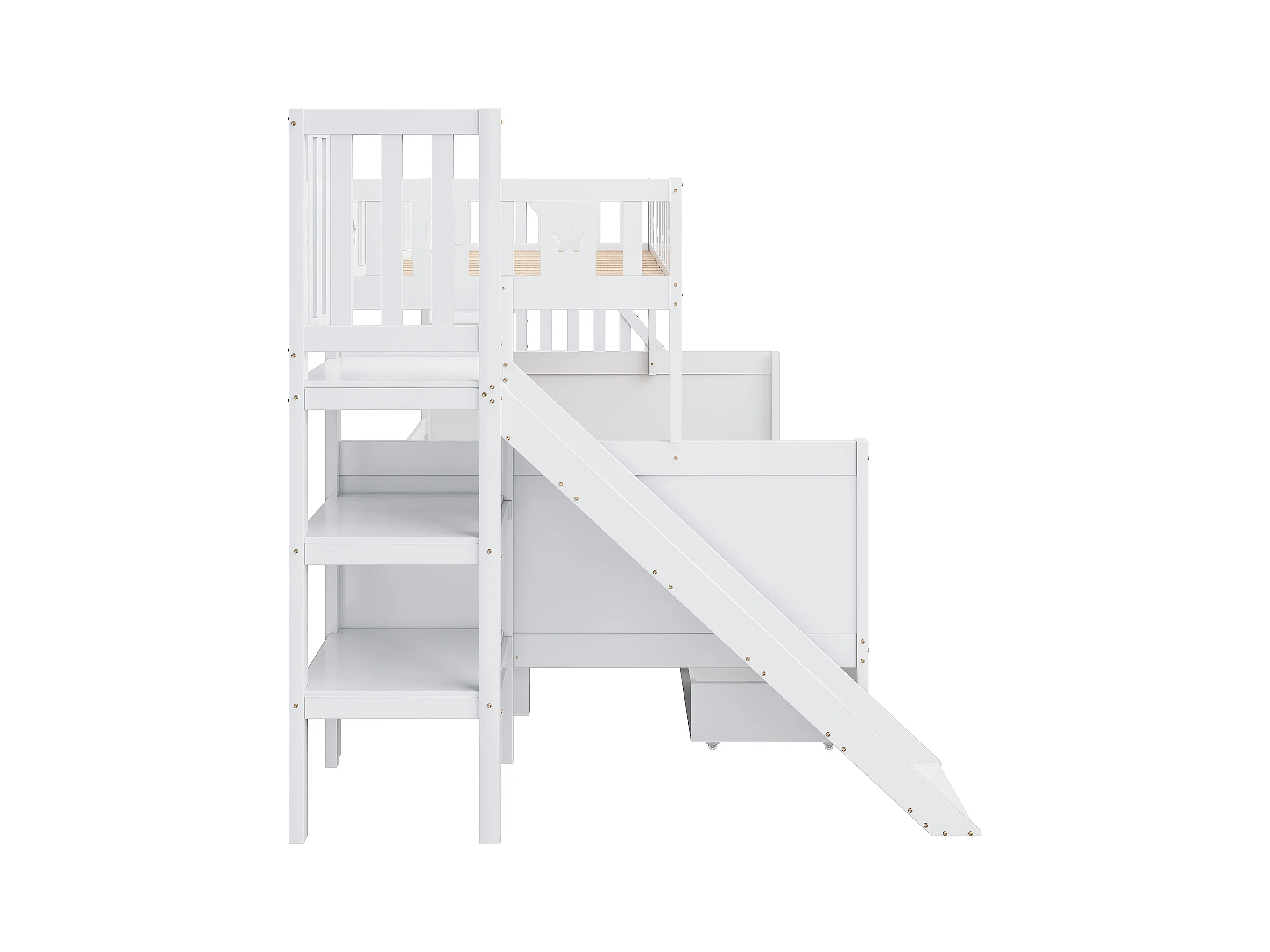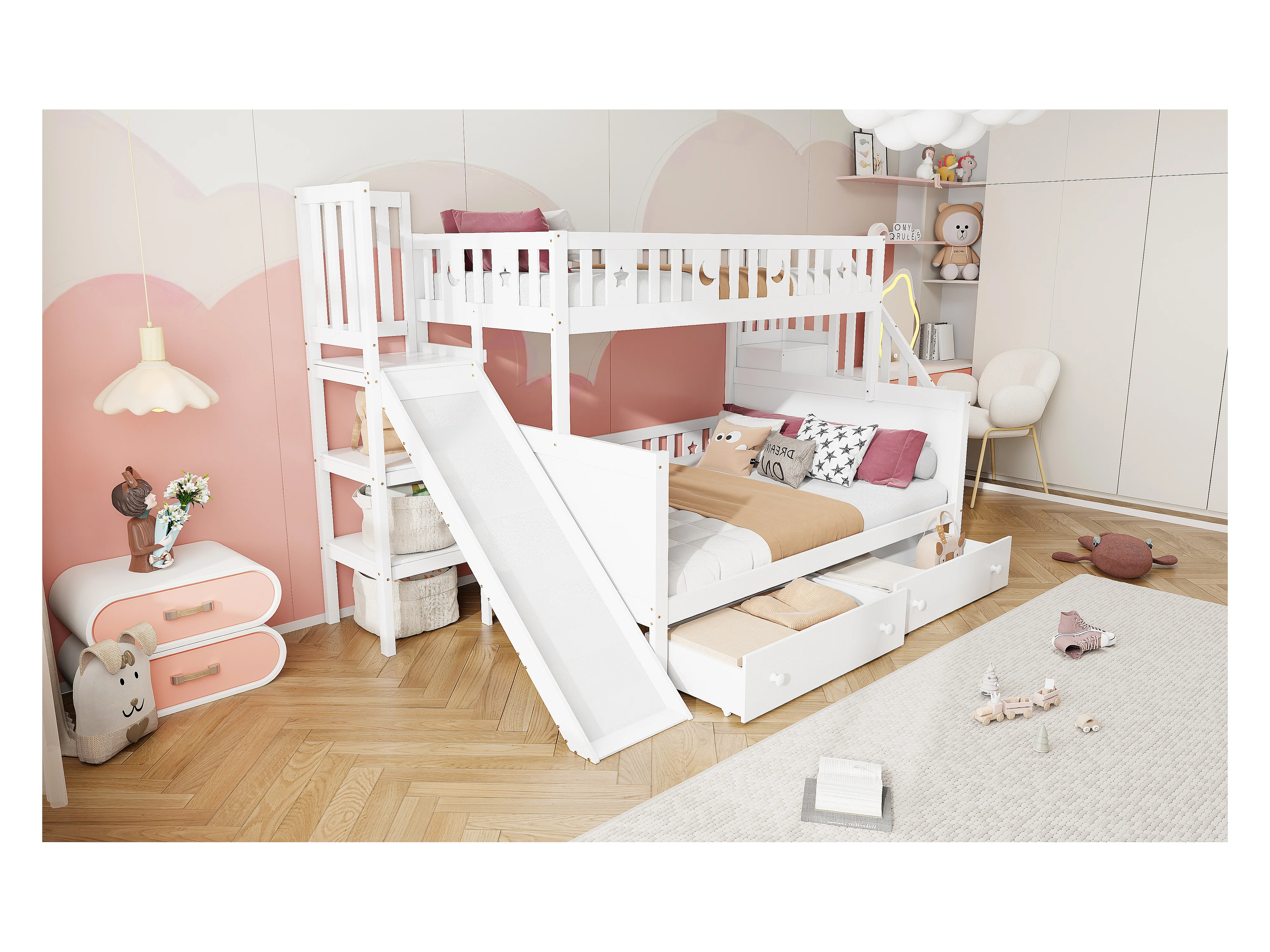 Kinderbett 90*200/140*200 cm, Massivholz-Etagenbett mit Rutsche und Regal