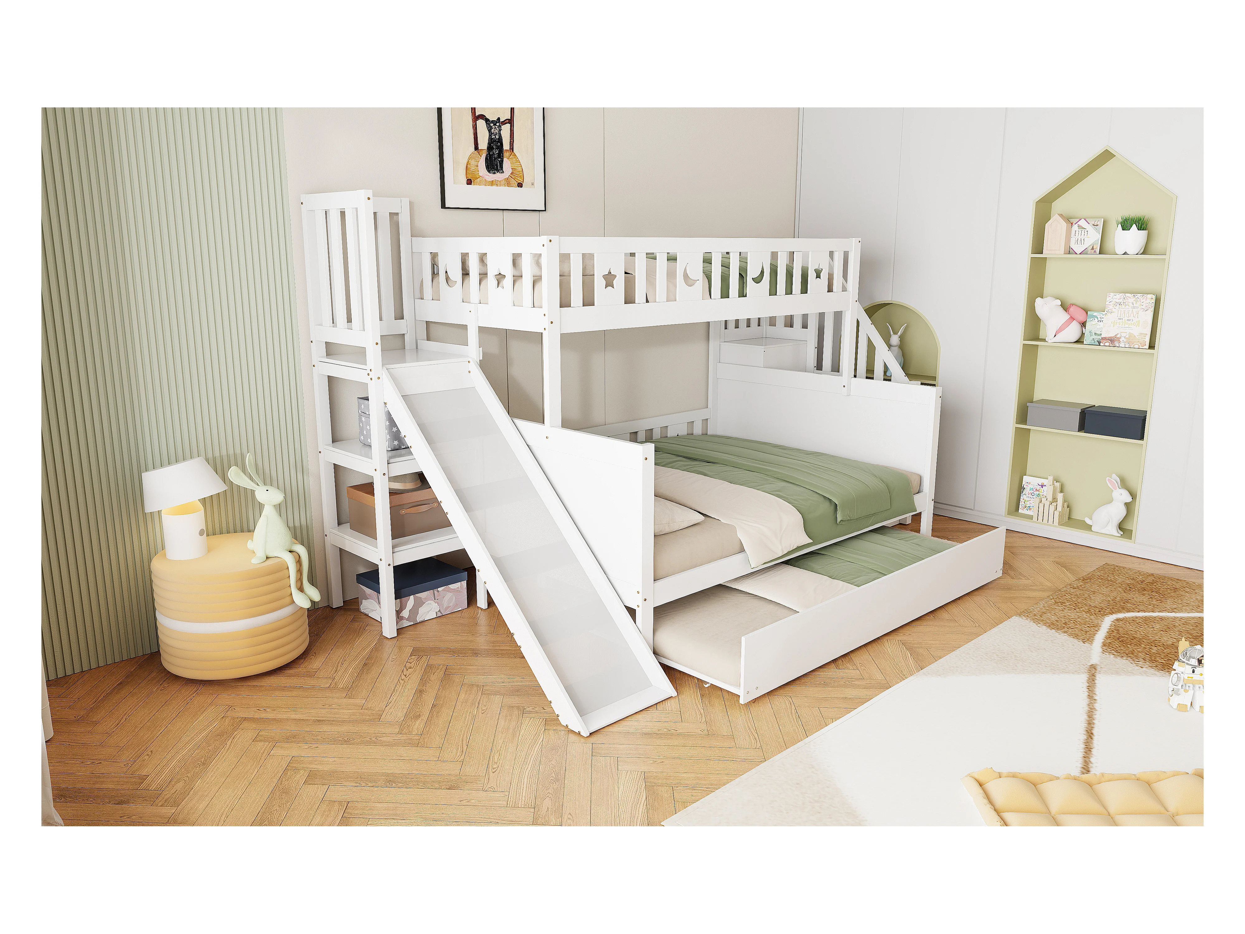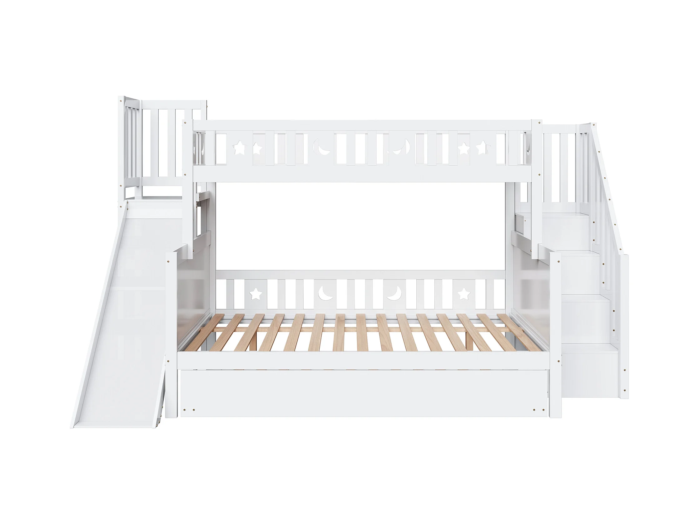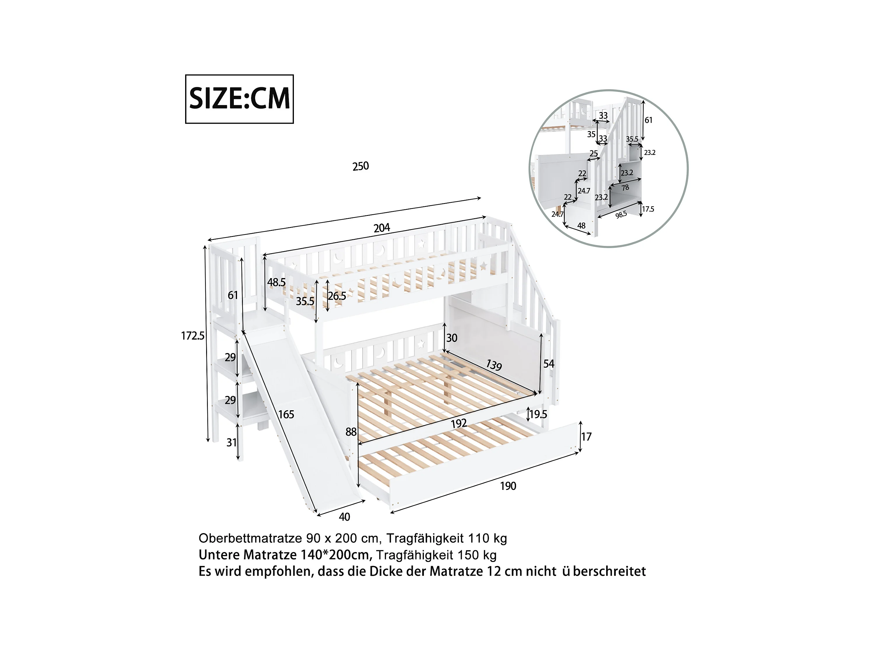 Kinderbett 90*200/140*200cm,Massivholz-Etagenbett mit Rutsche und Regal