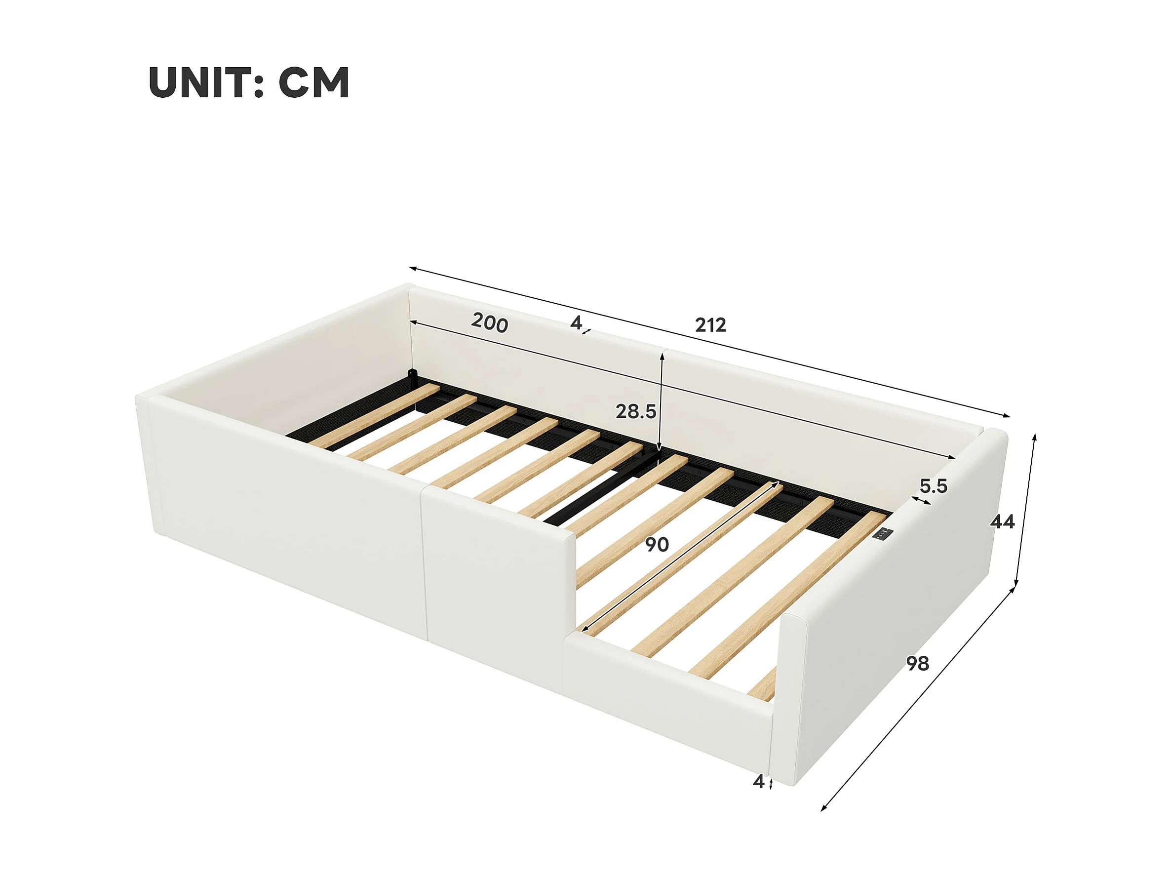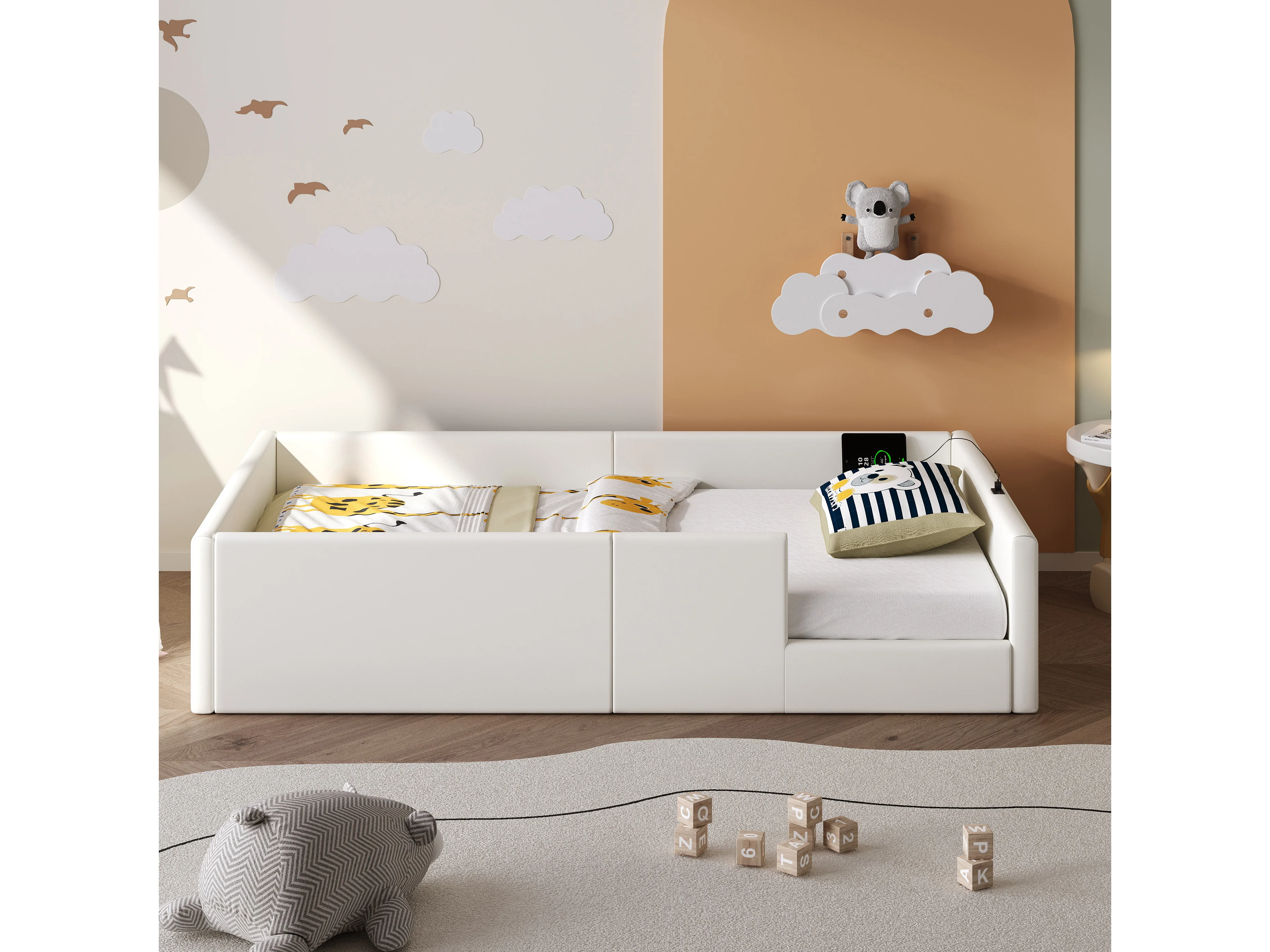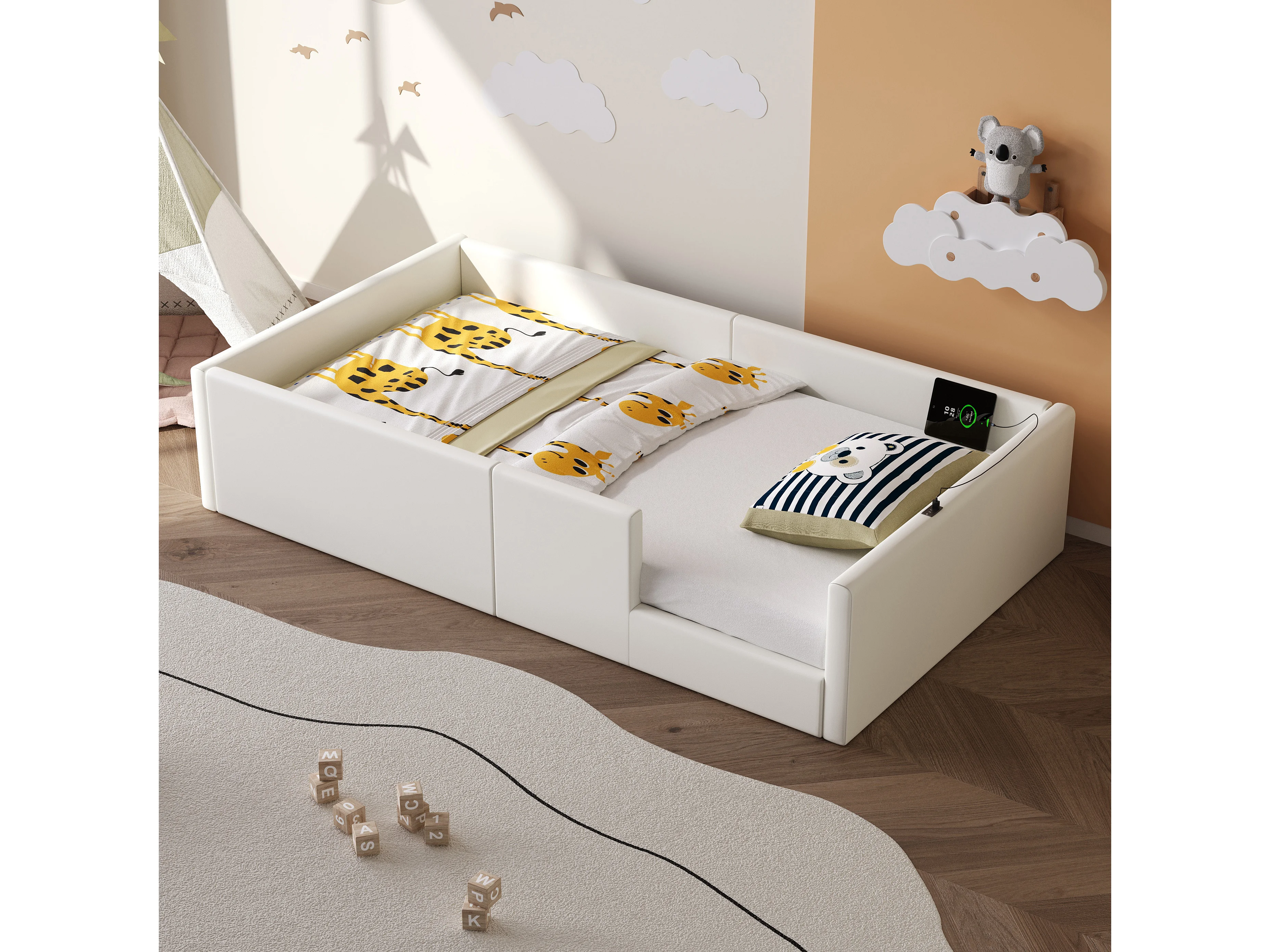 Kinderbett 90 x 200 cm – mit 3 USB- und USB-C-Anschlüssen – Weiß – Matratze nicht enthalten