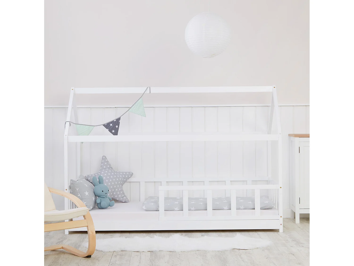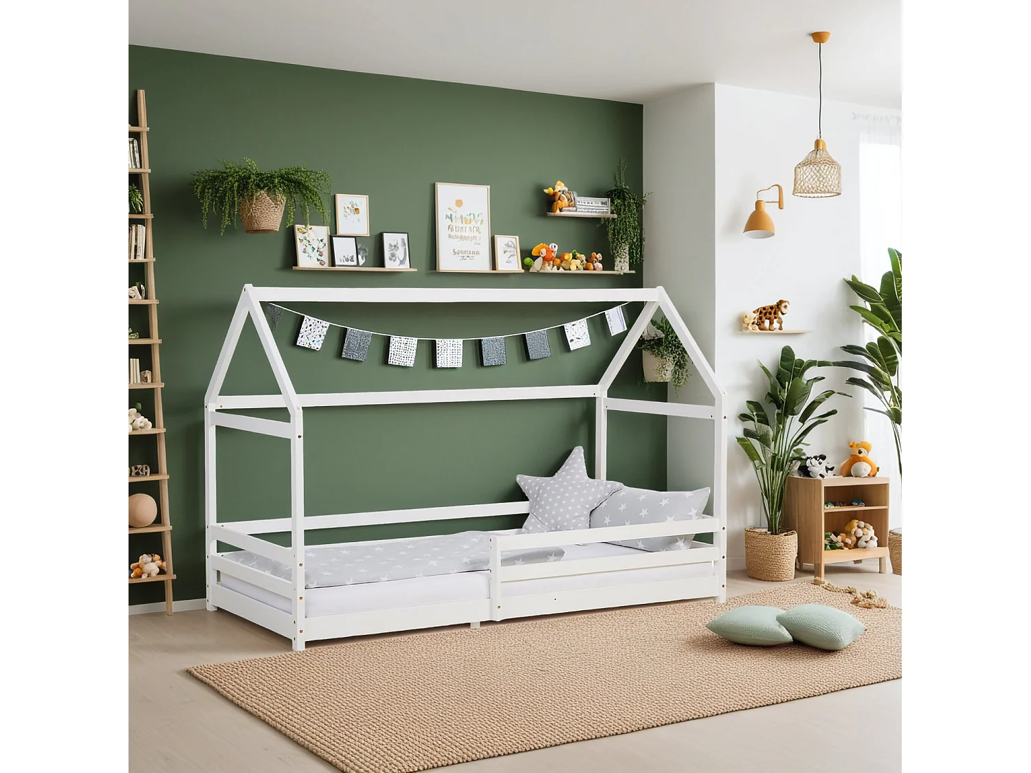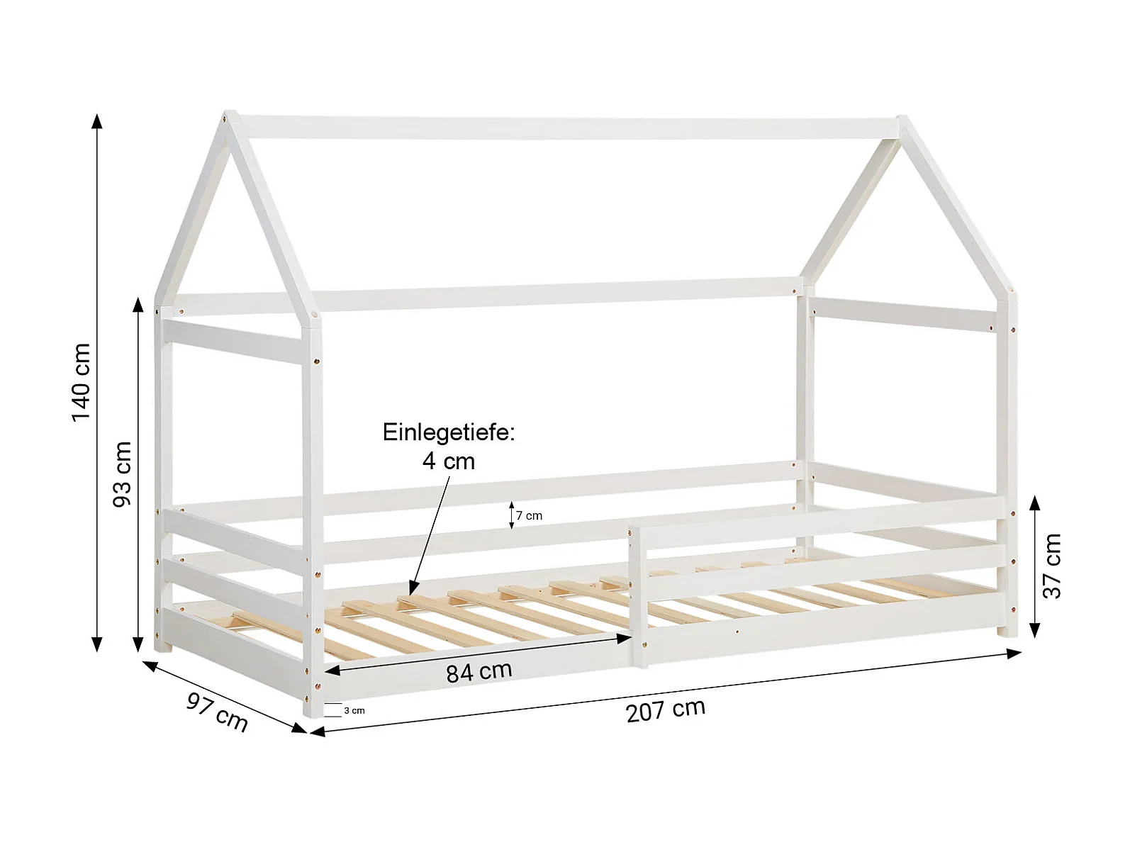 Hausbett für Kinder aus Holz 90 x 200 cm weiß Kinderzimmer Kinderbett Tosse