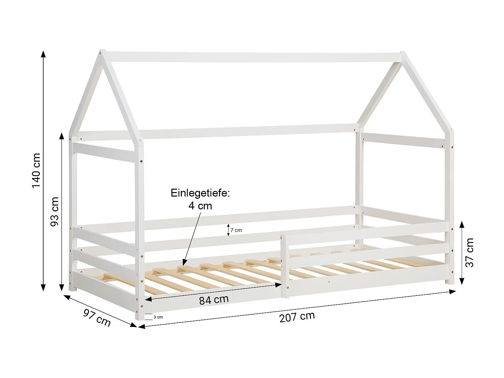 Hausbett Weiß 90x190 cm