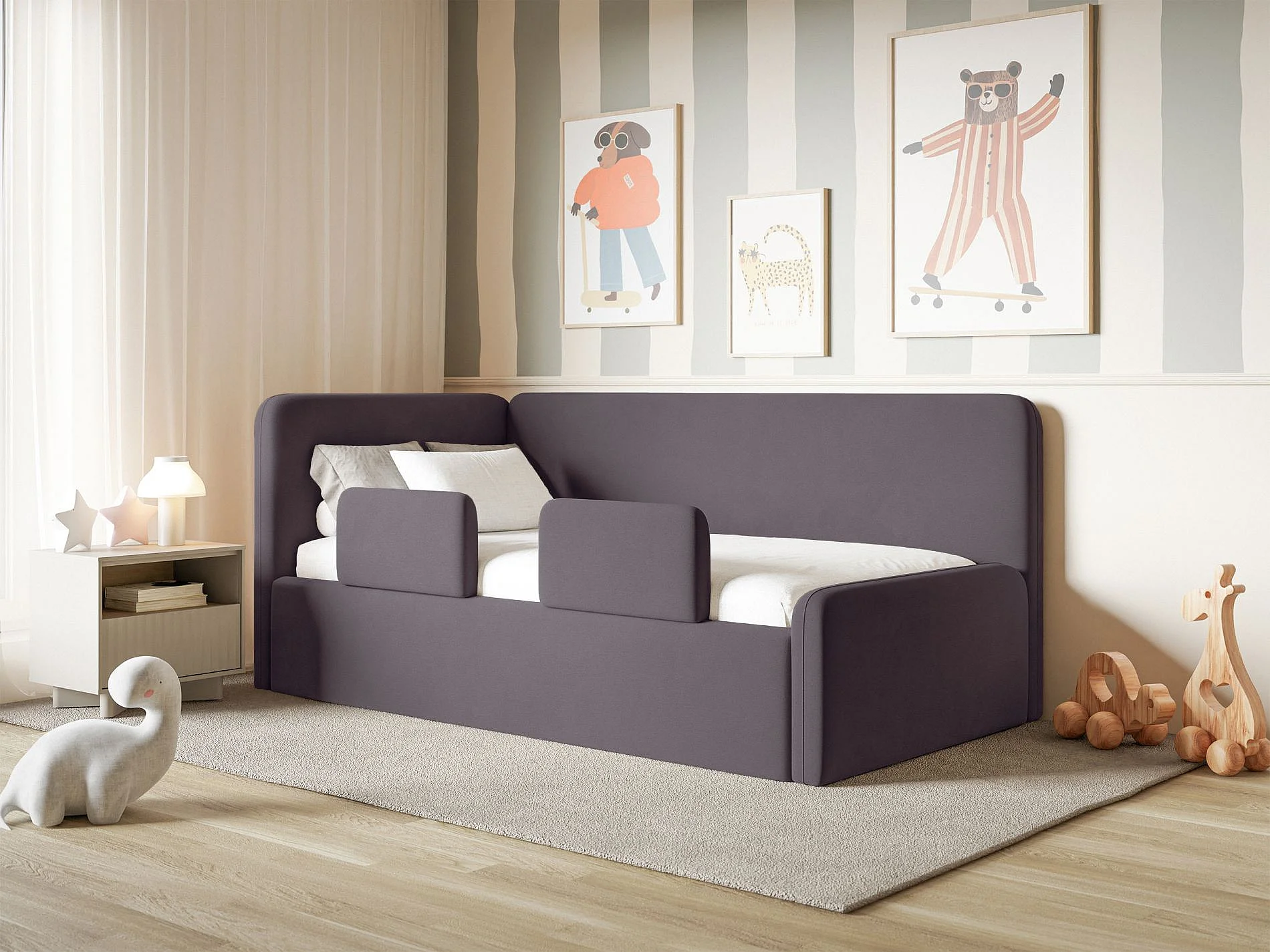 Kinderbett mit Kopfteil links – Matratze – Bettkasten und Rausfallschutz – Violett – 90x200 cm – FANKO