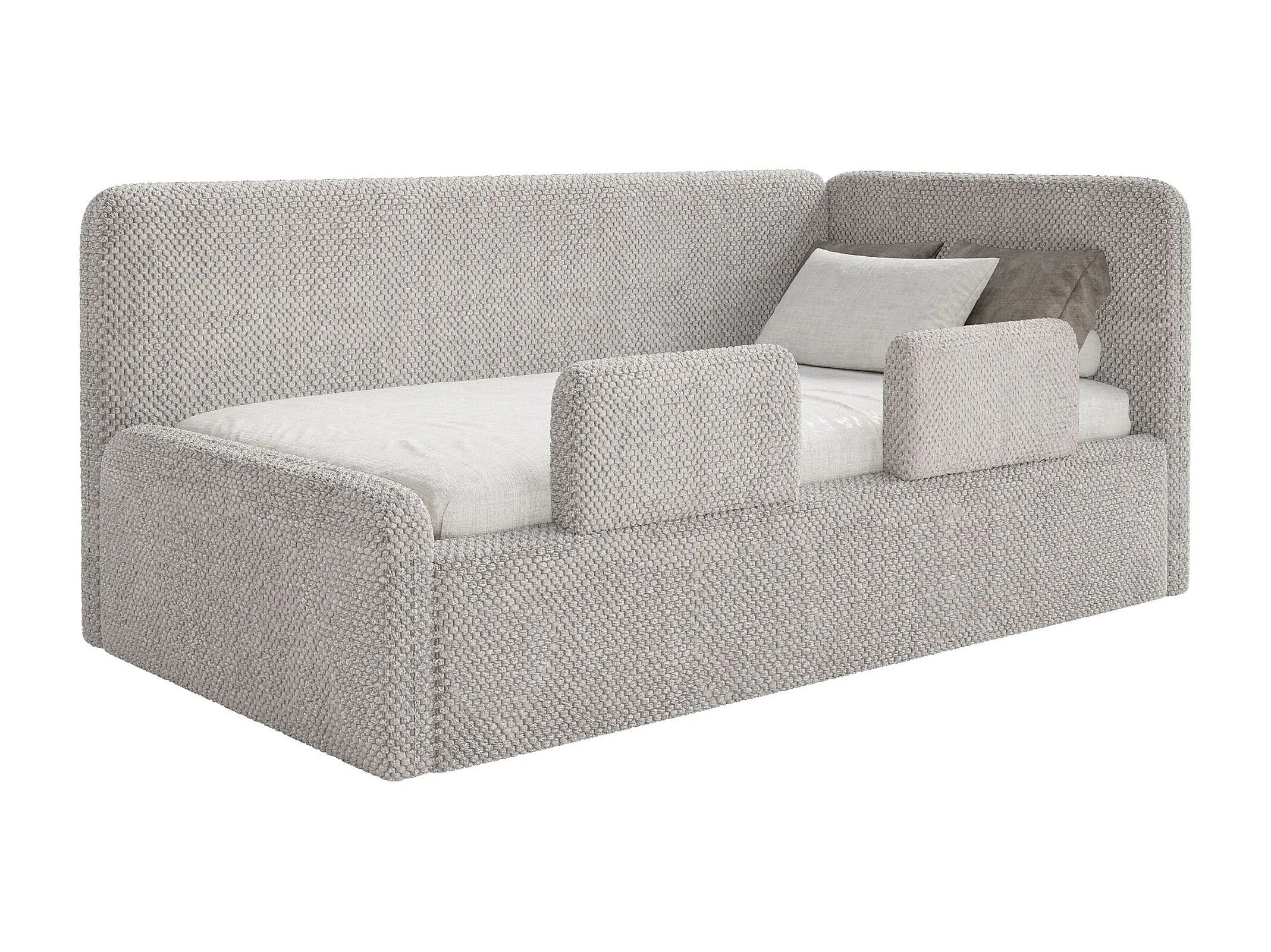 Kinderbett mit Kopfteil rechts – Matratze – Samt – Rausfallschutz – Samt – Greige – 90x200 cm – FANKO