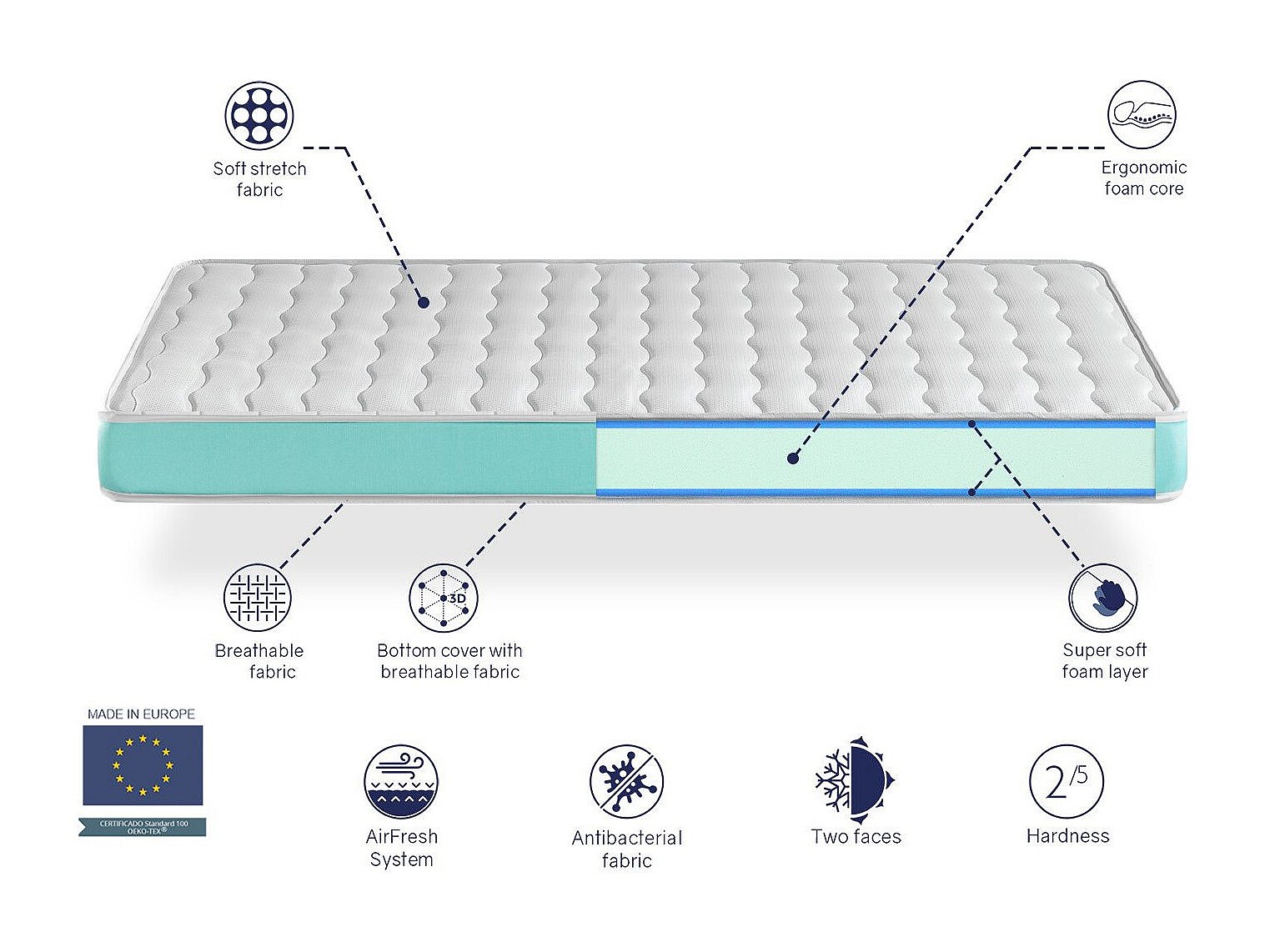 Kindermatratze 70X190 EKOZEN, Hohe 14 CM , Ergonomisch und anpassungsfahig