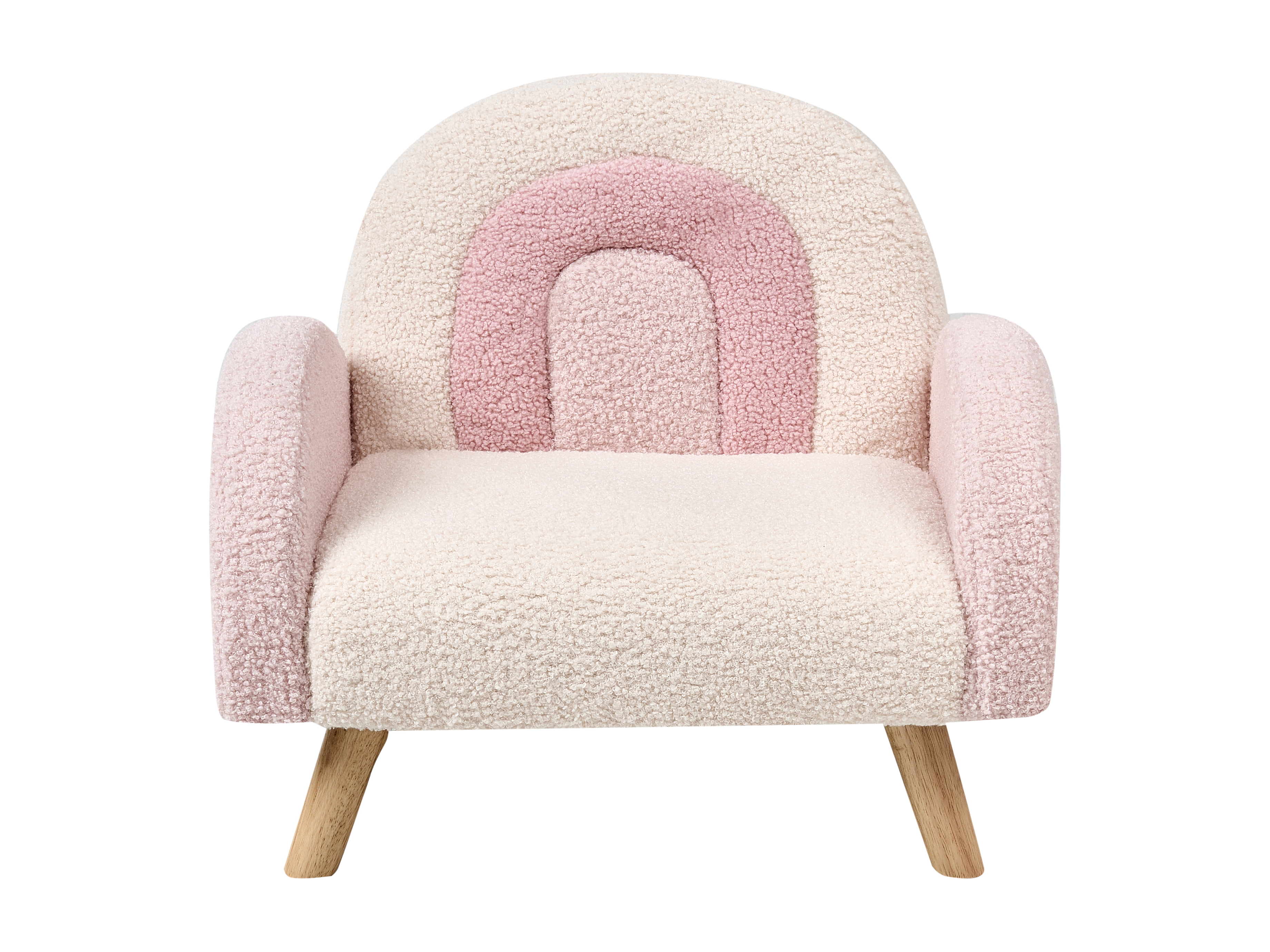 Kindersessel aus Bouclé rosa gepolstert Regenbogen Design für Kinderzimmer Ombo