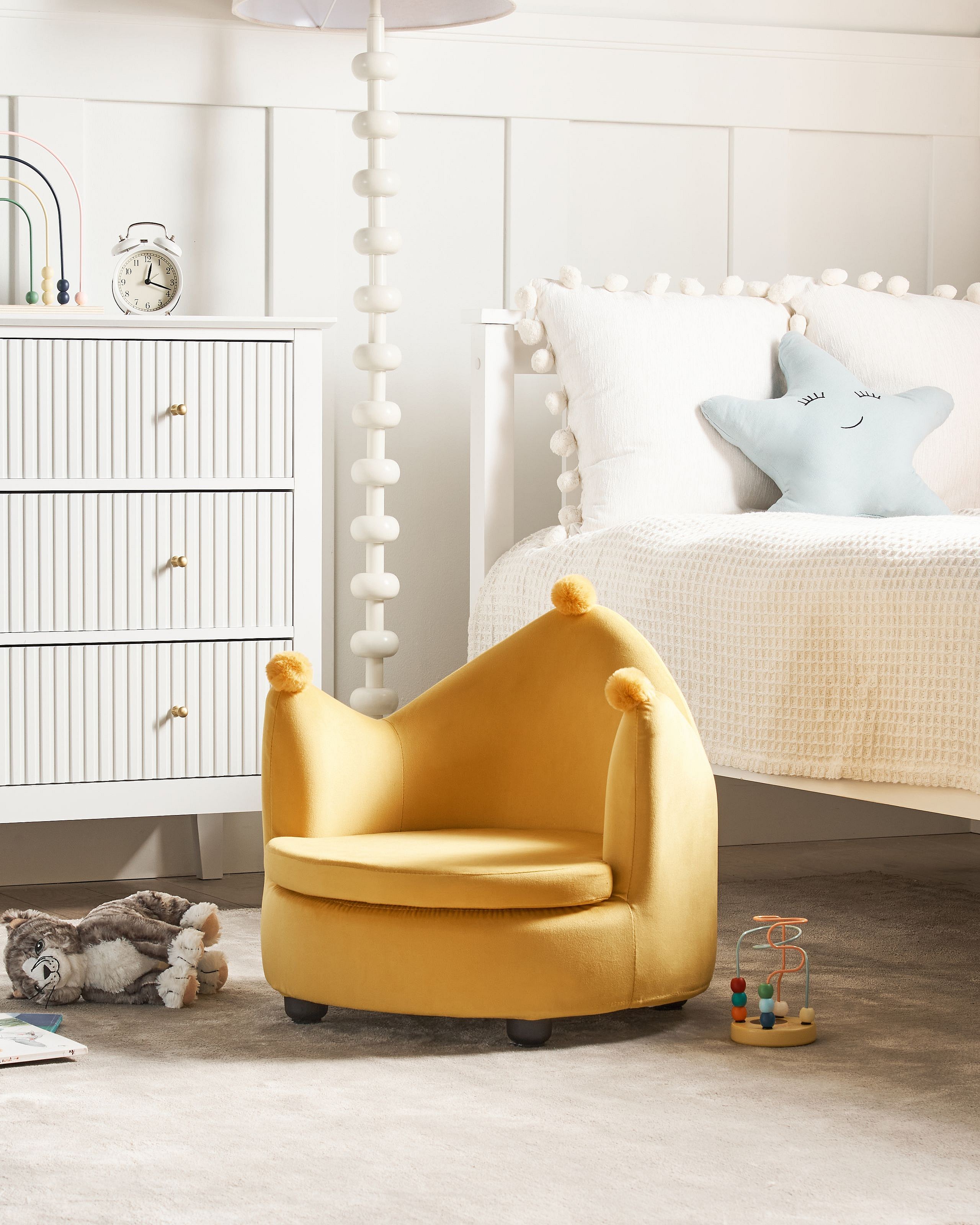 Kindersessel Samtstoff gelb Kronenform VEGA