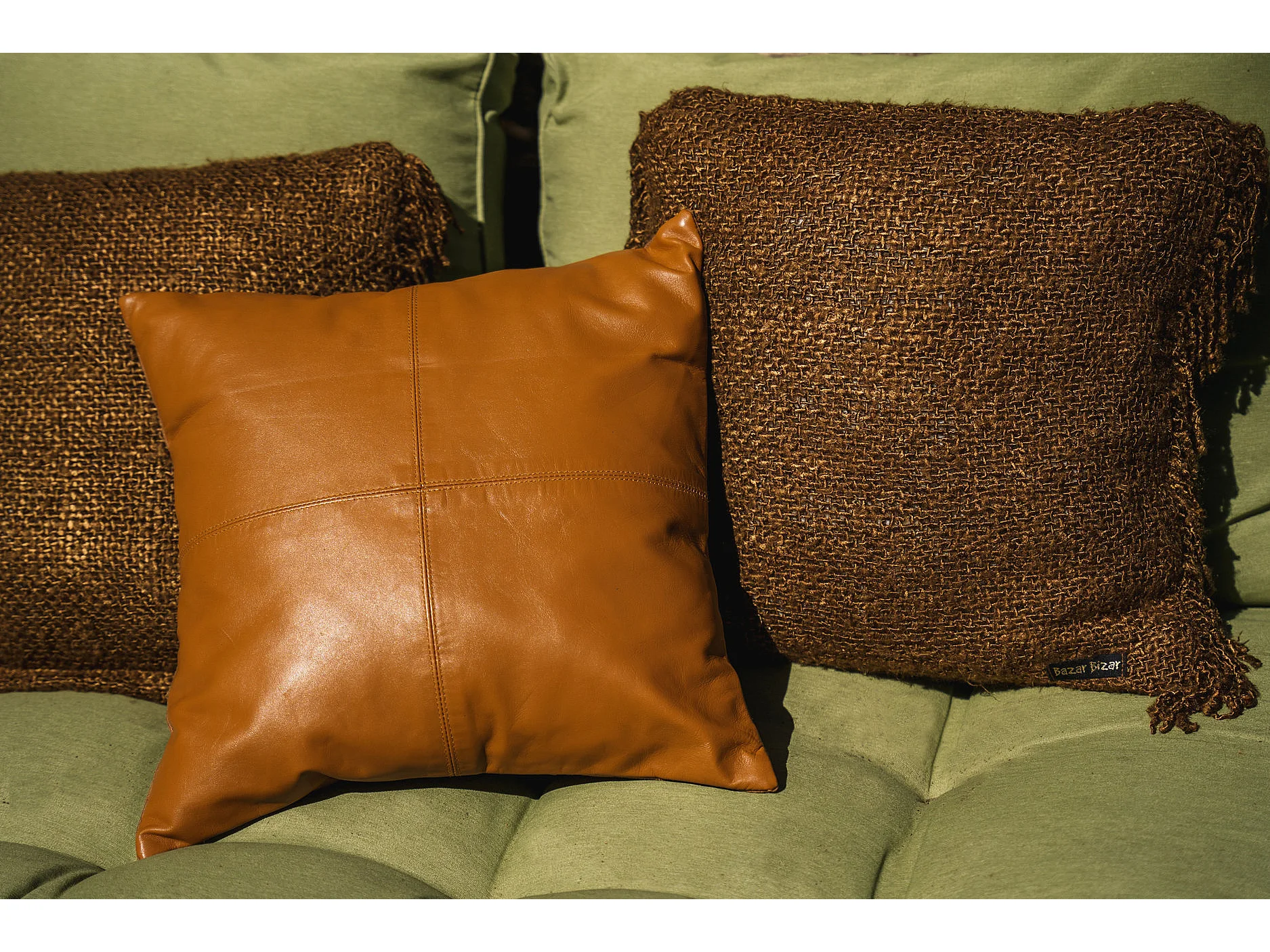 Der Vier-Panel Leder Kissenbezug - Schokolade - 60x60