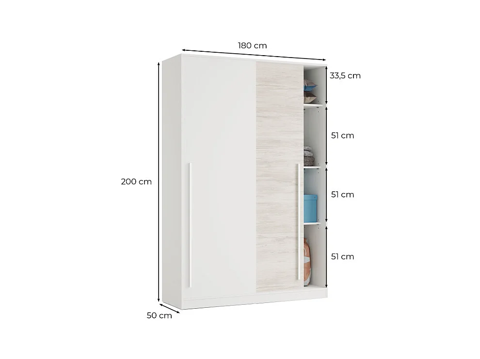 Kleiderschrank 2 Schiebetüren weißes 200x120x50cm