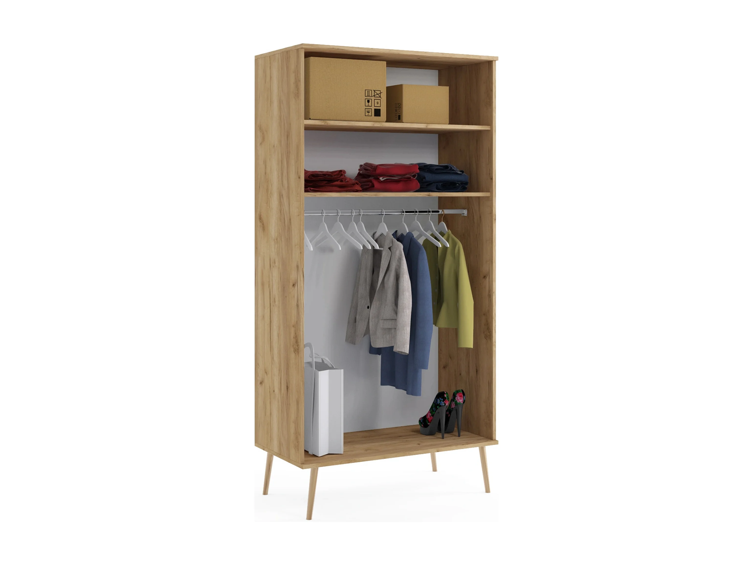 Kleiderschrank NATURA, 100 cm, Eiche Craft, 2-türig, mit Kleiderstange