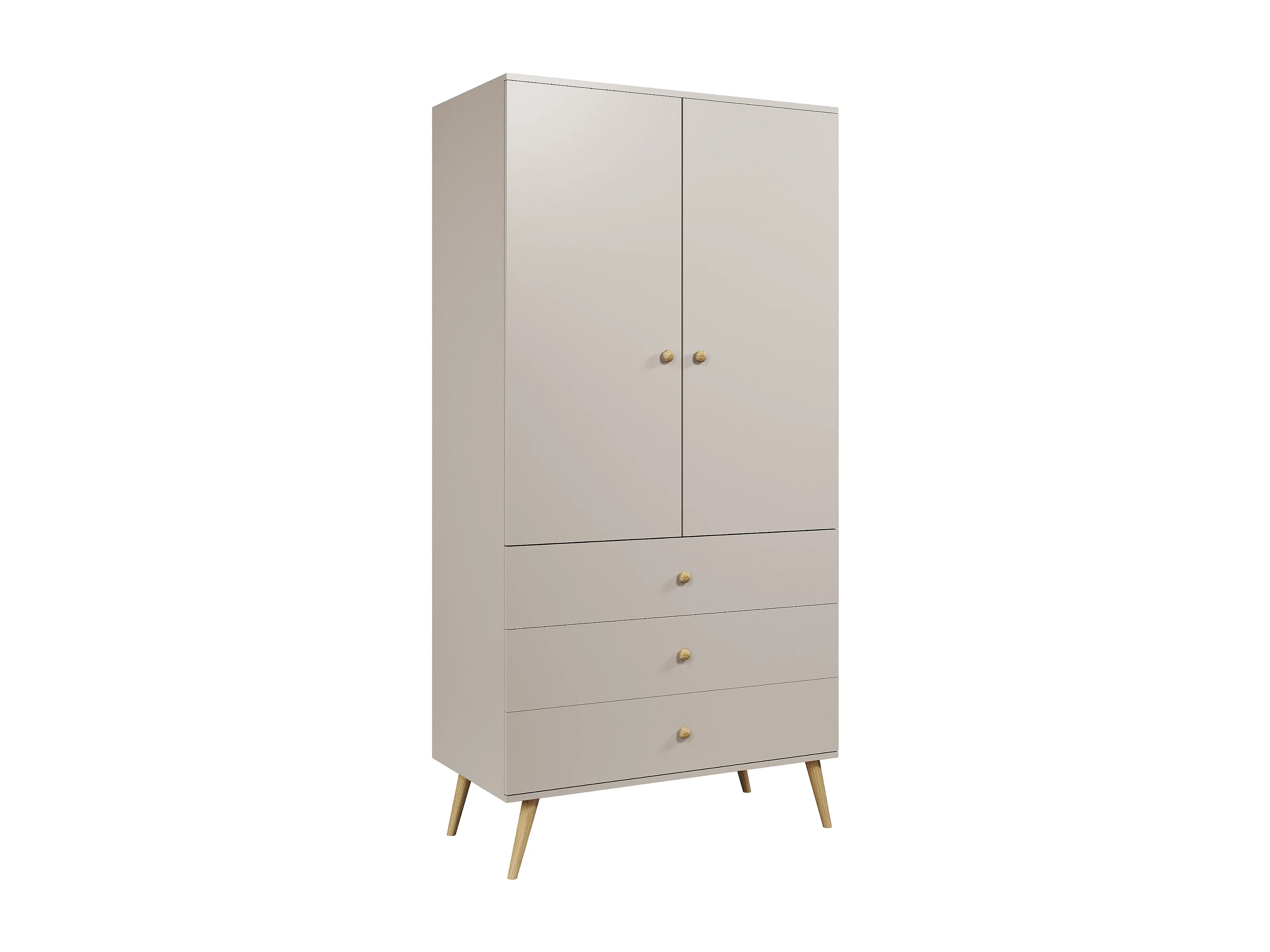 Kleiderschrank NATURA, 100 cm, Weiß Matt, mit 3 Schubladen