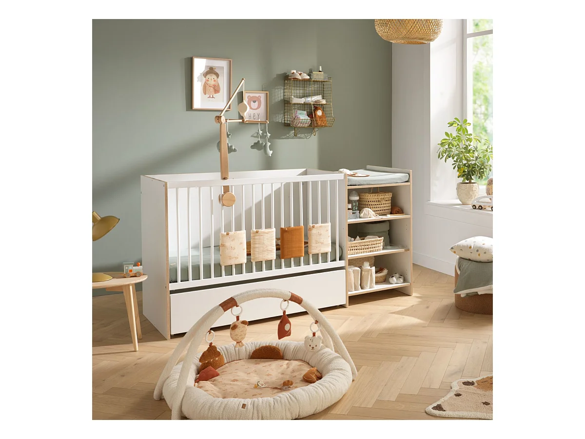 Babybett Lapinou 120x60 cm Akazie Hell und Weiß - 3 Verstellbare Positionen - Französische Herstellung