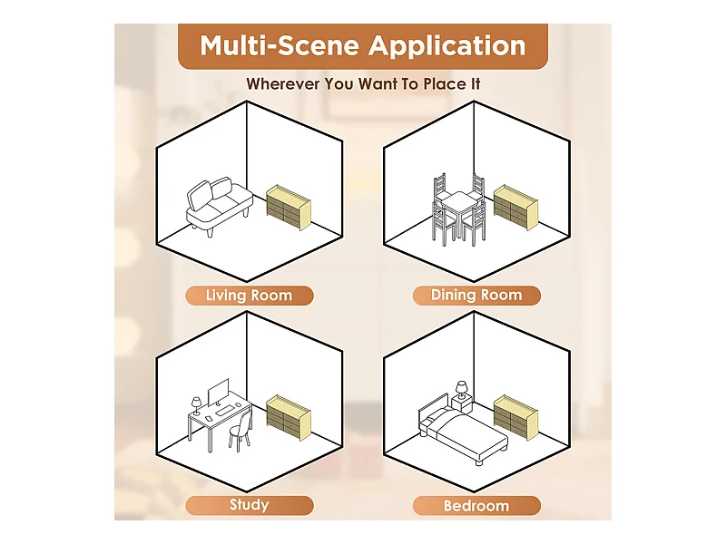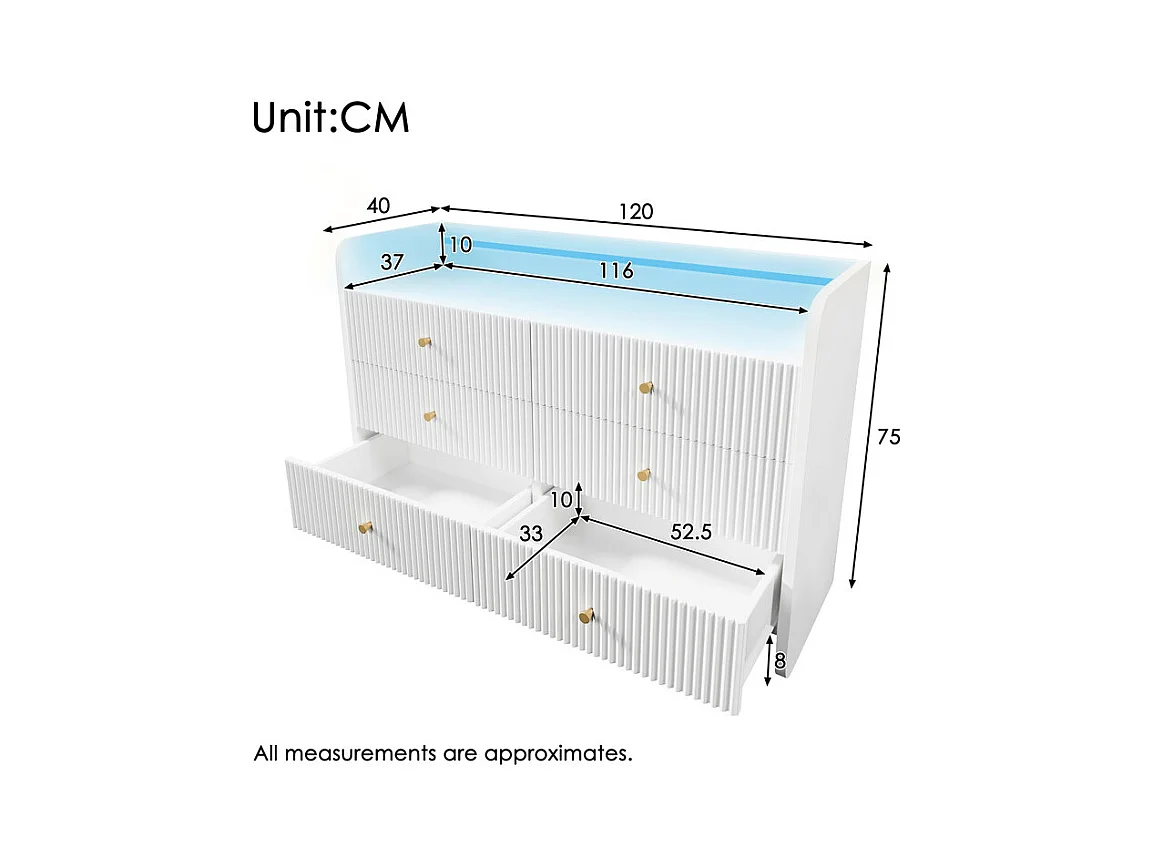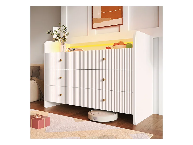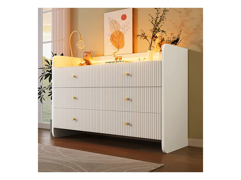 Kommode 6 Schubladen - mit LED Beleuchtung und Kippsicherung - Rillen Design 120x40x75cm