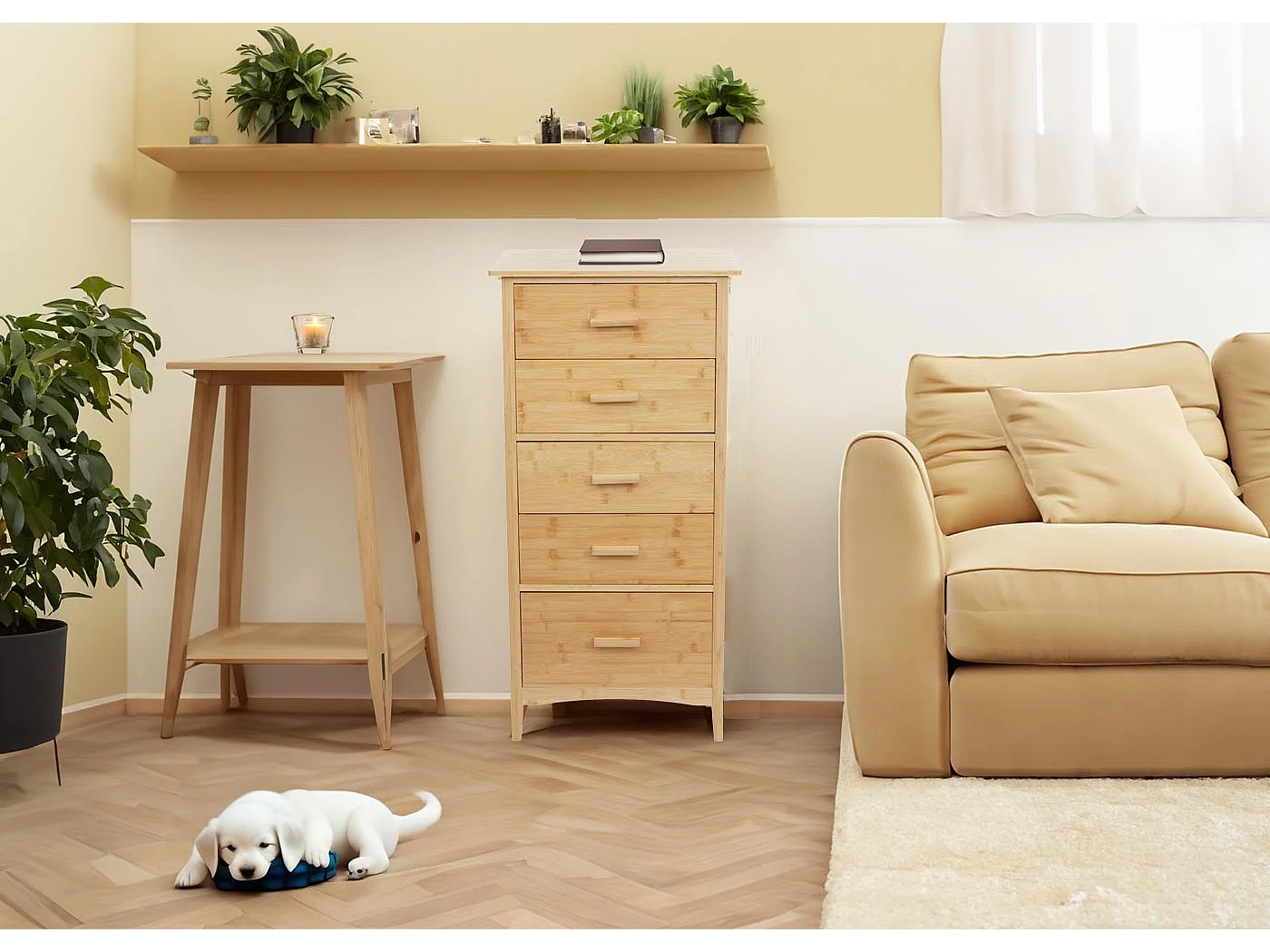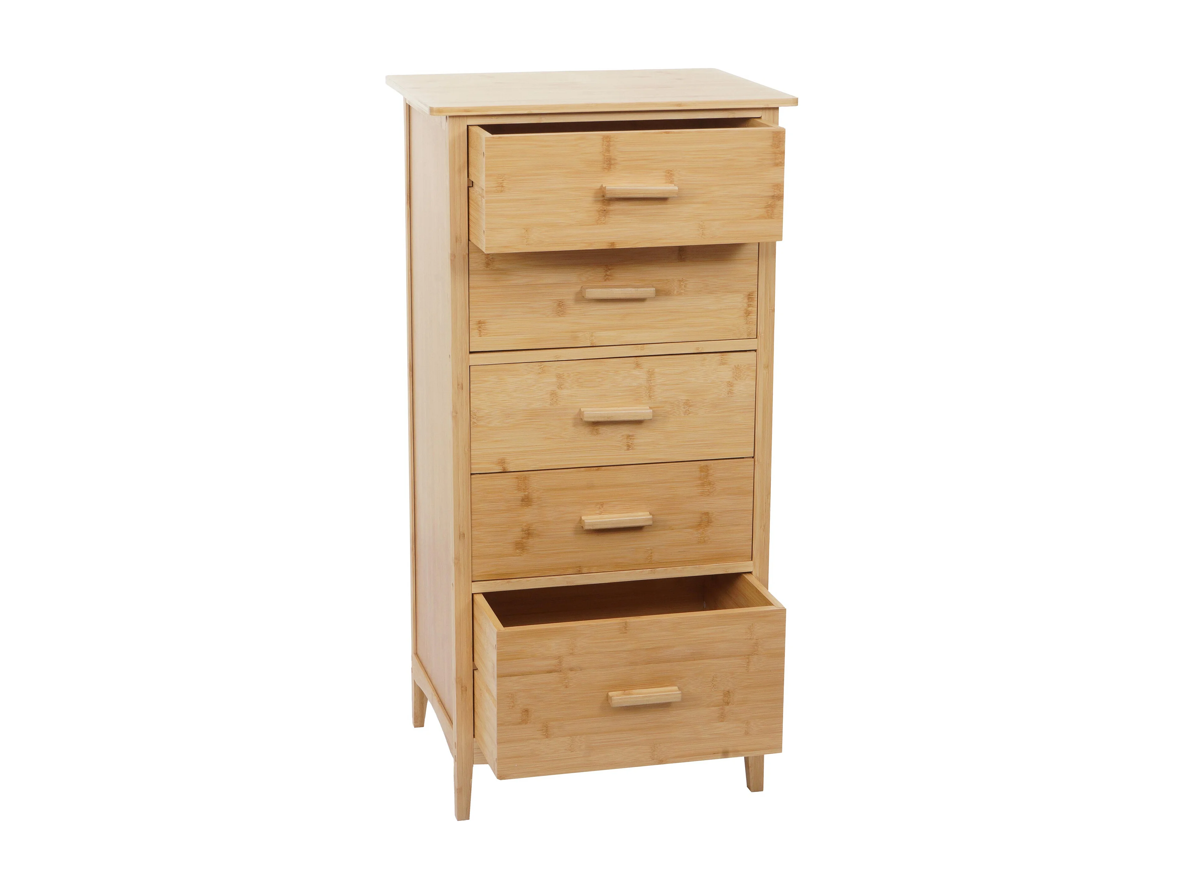 Bambus Kommode MCW-M24, Badezimmerschrank Schrank Anrichte Badschrank Beistellschrank, 5 Schubladen, FSC® 100x50x40cm