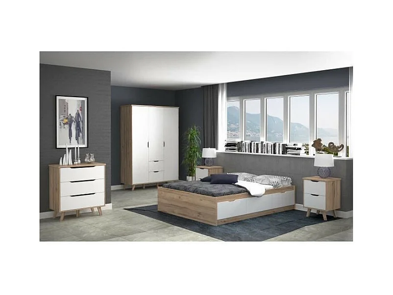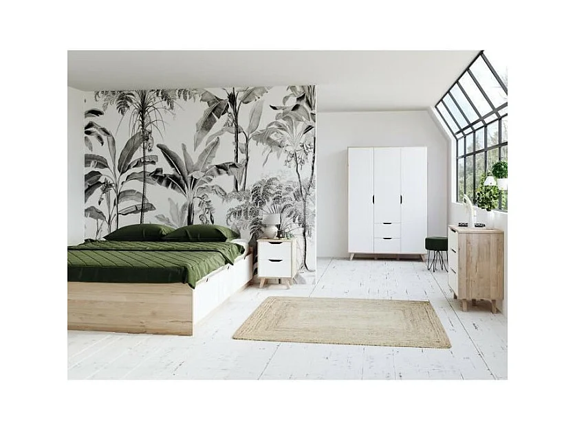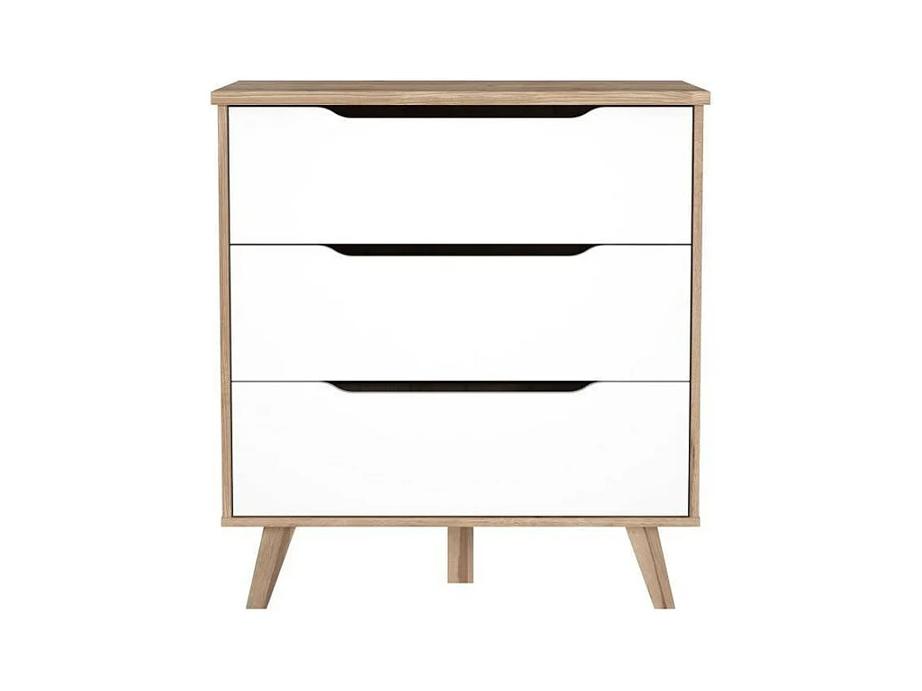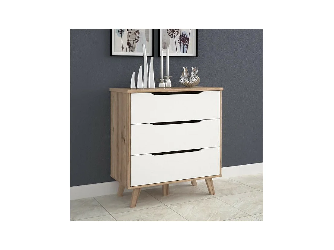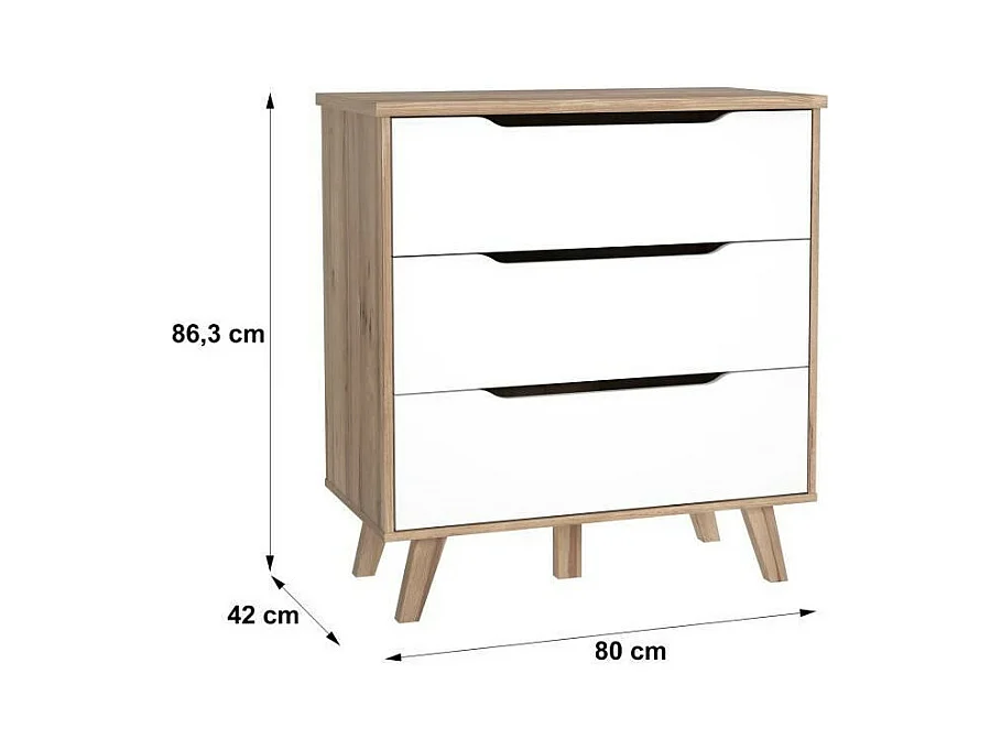 Kommode mit 3 Schubladen – Eiche und Mattweiß – Massive Füße – skandinavisch 80 cm – VANKKA