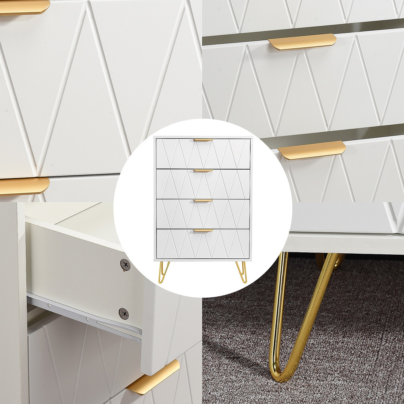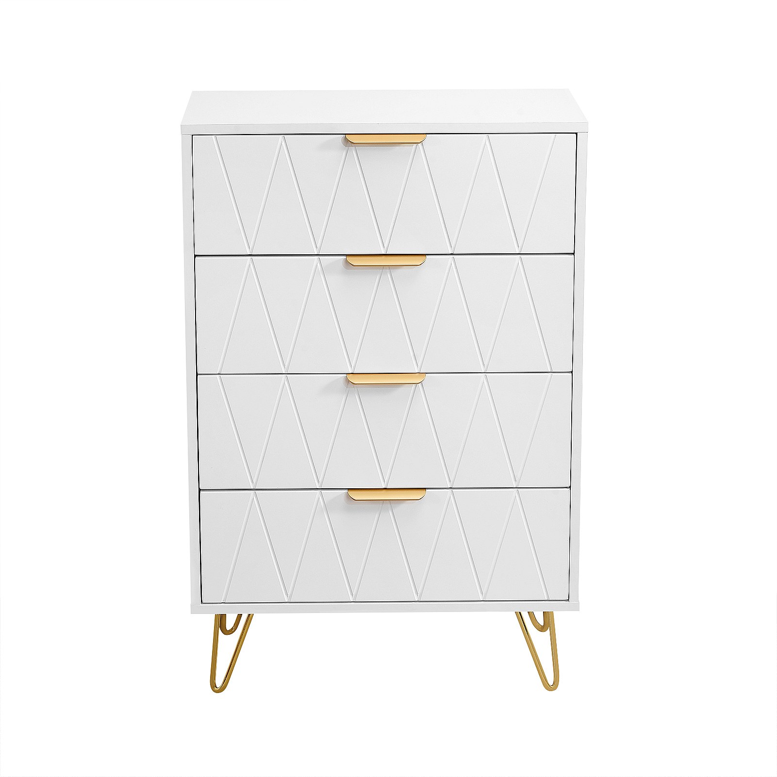 Kommode mit 4 Schubladen, große Aufbewahrungstruhe mit Metallbeinen – White Diamond