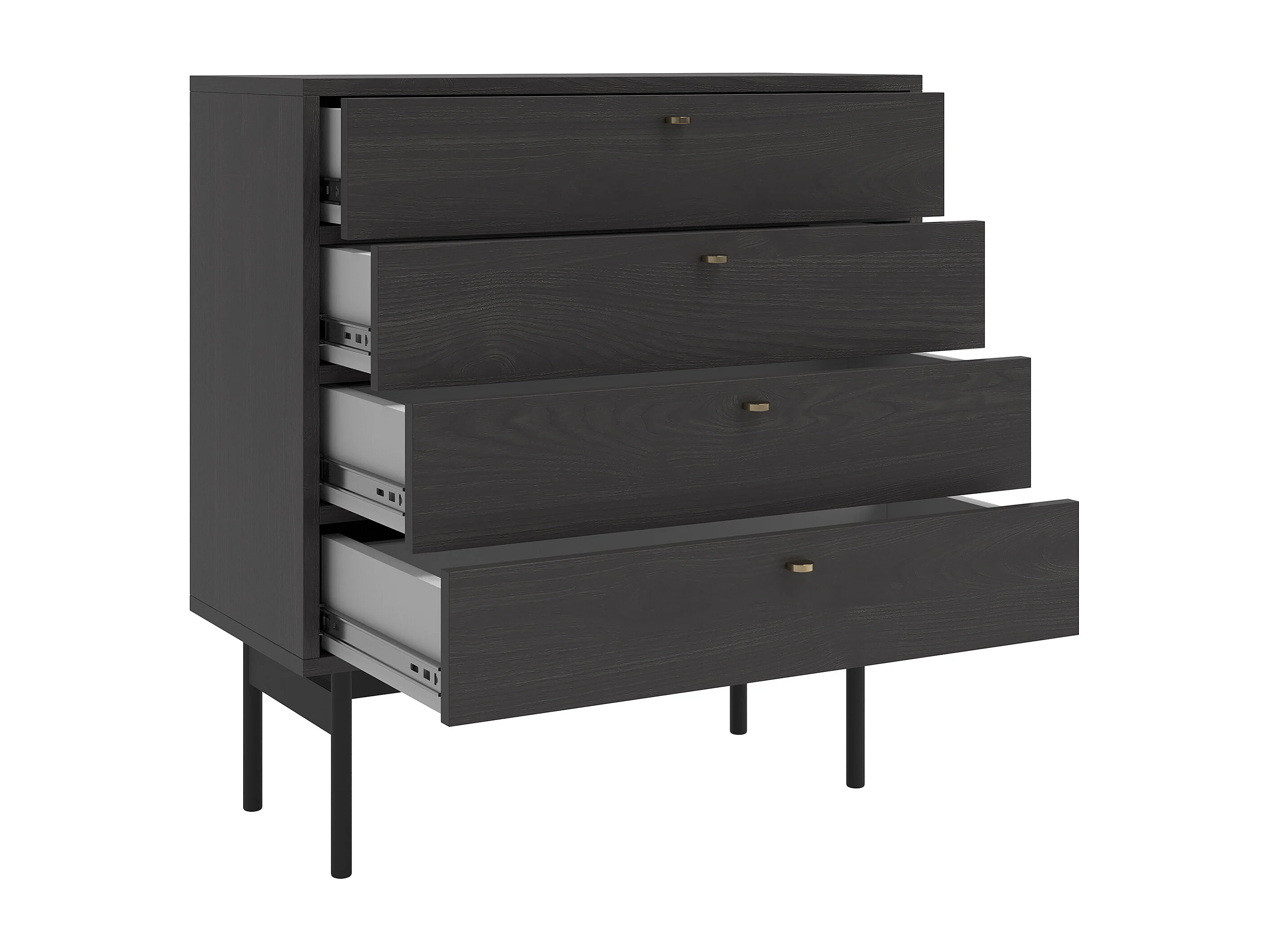 Kommode mit 4 Schubladen - Holzoptik Esche Portland Schwarz - 85,5 cm - OLAR
