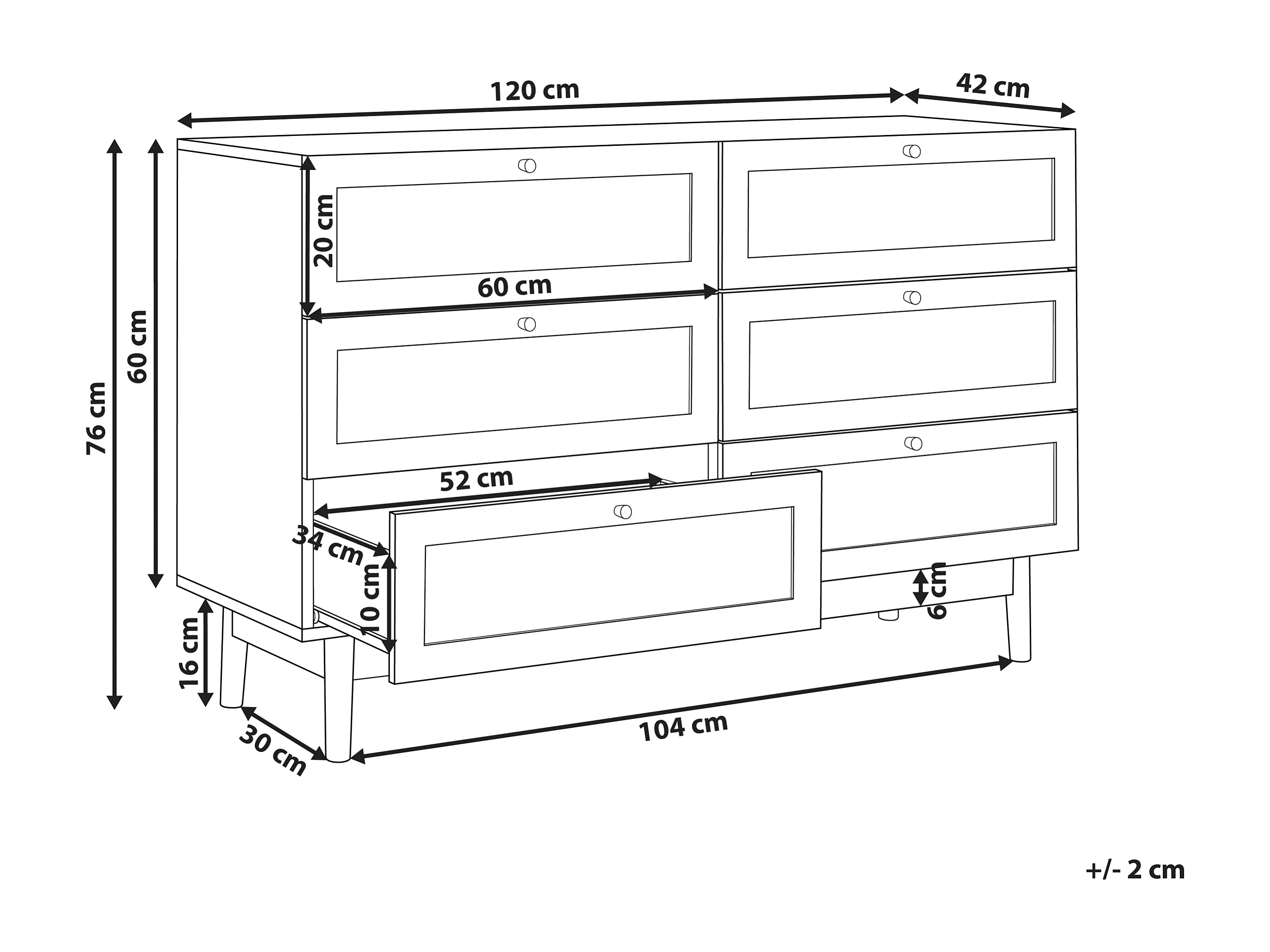 Kommode mit 6 Schubladen NIVO Hellbraun