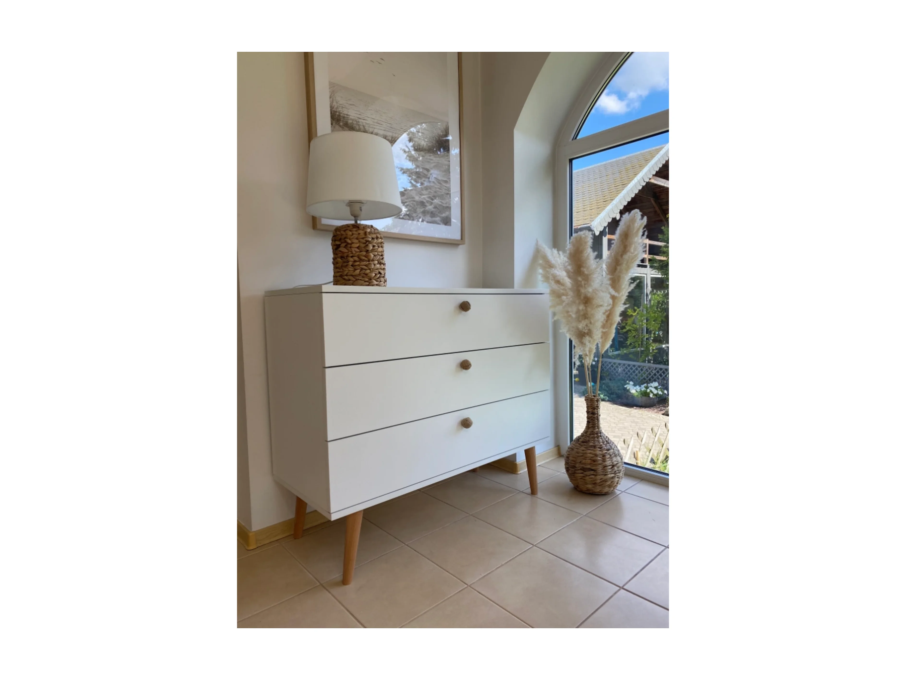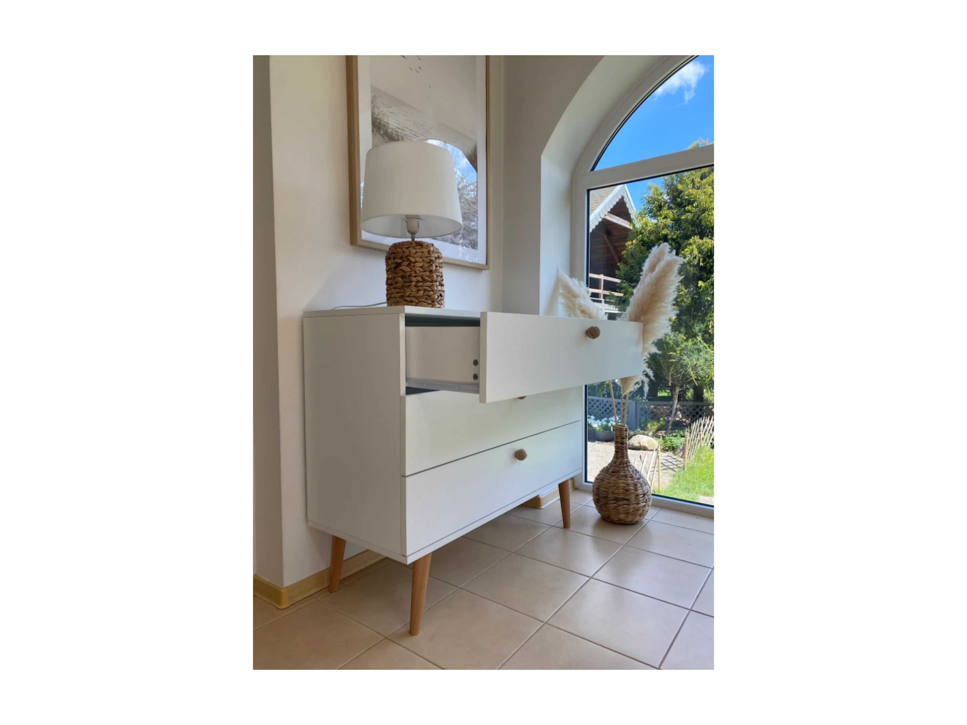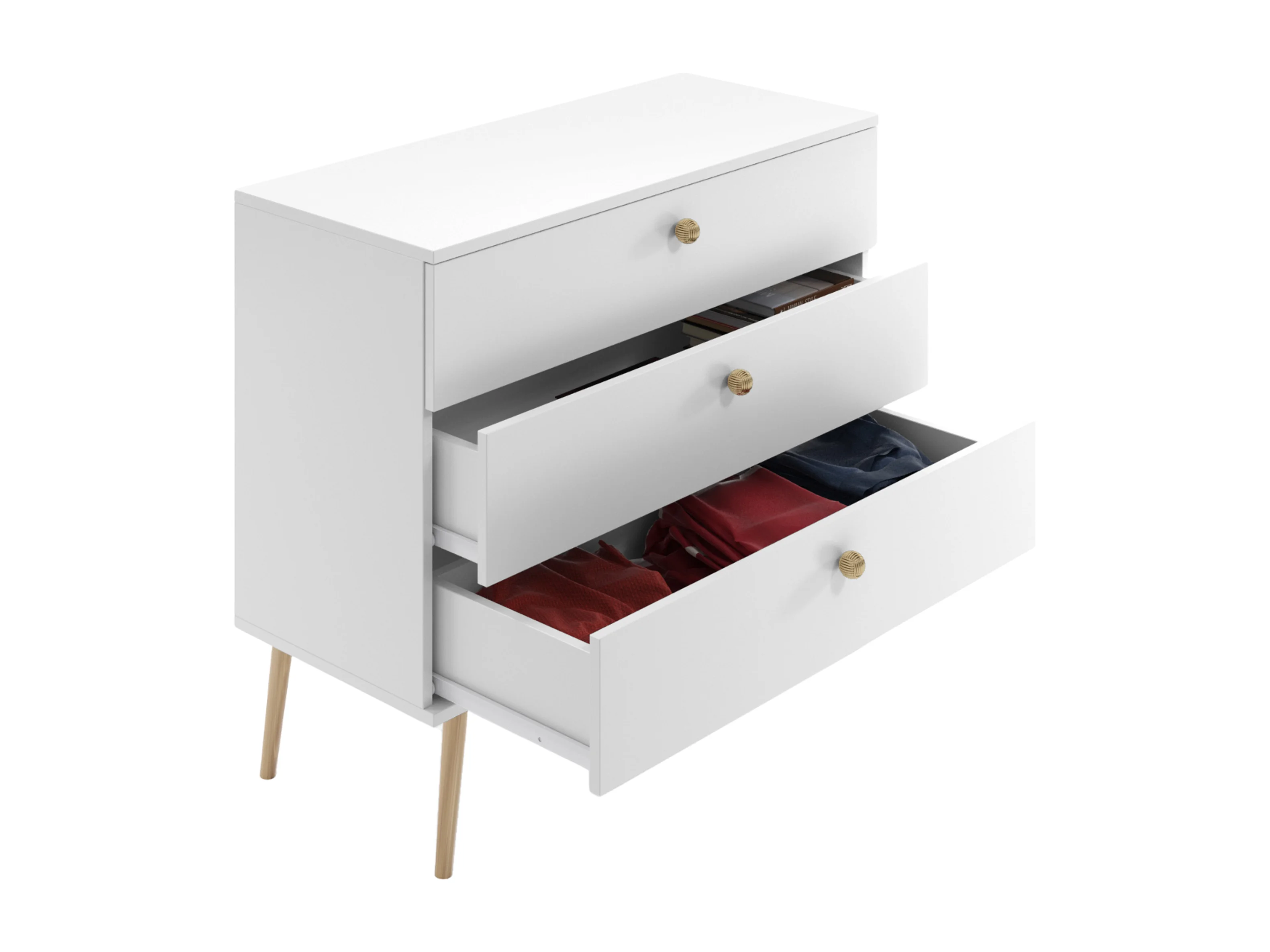 Kommode NATURA, 100 cm, Weiß Matt, mit 3 Schubladen