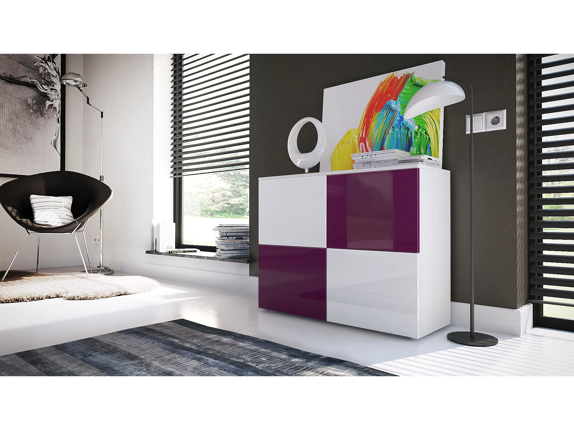KOMMODE Rova Weiß Hochglanz / Brombeer Hochglanz