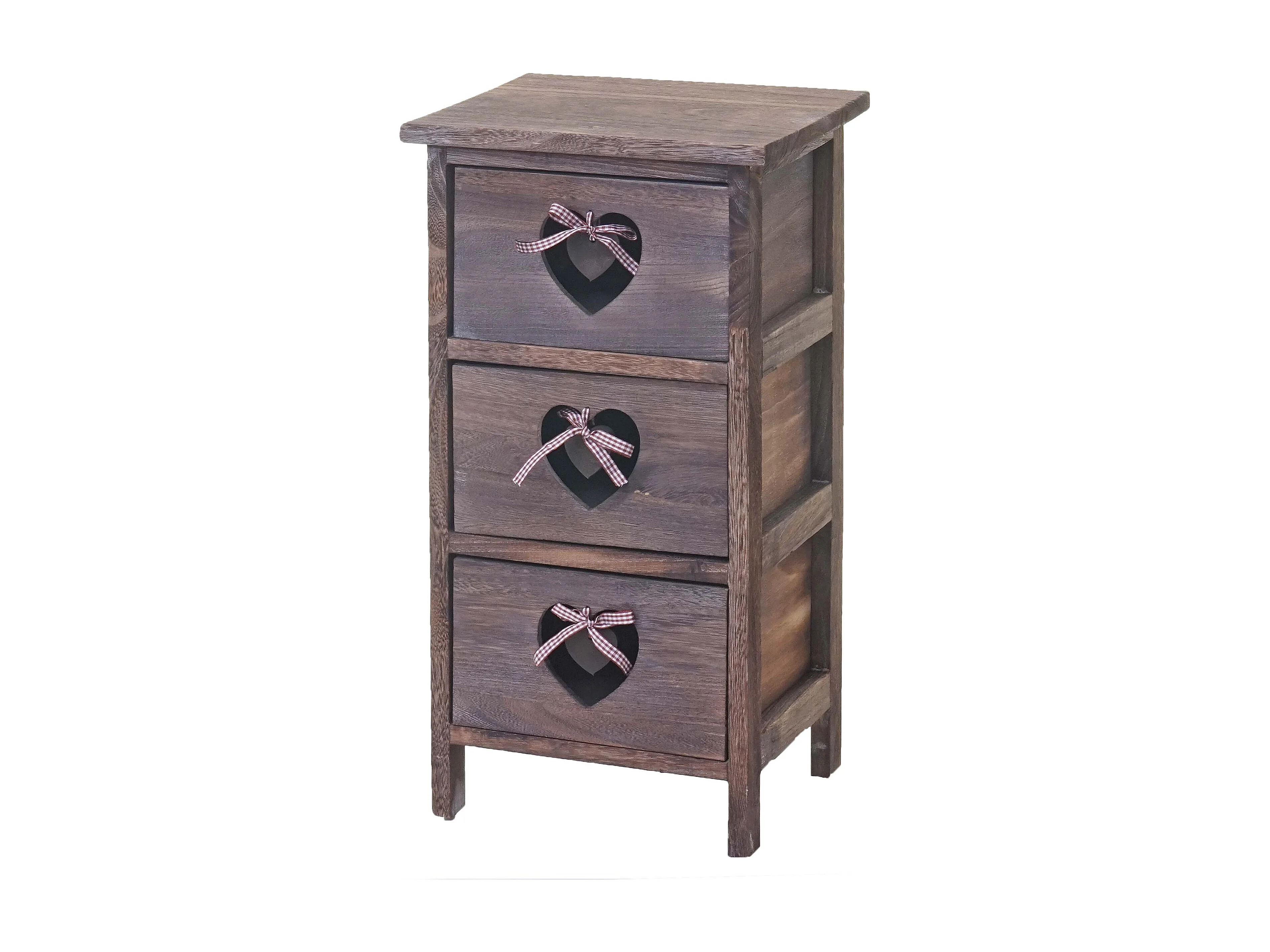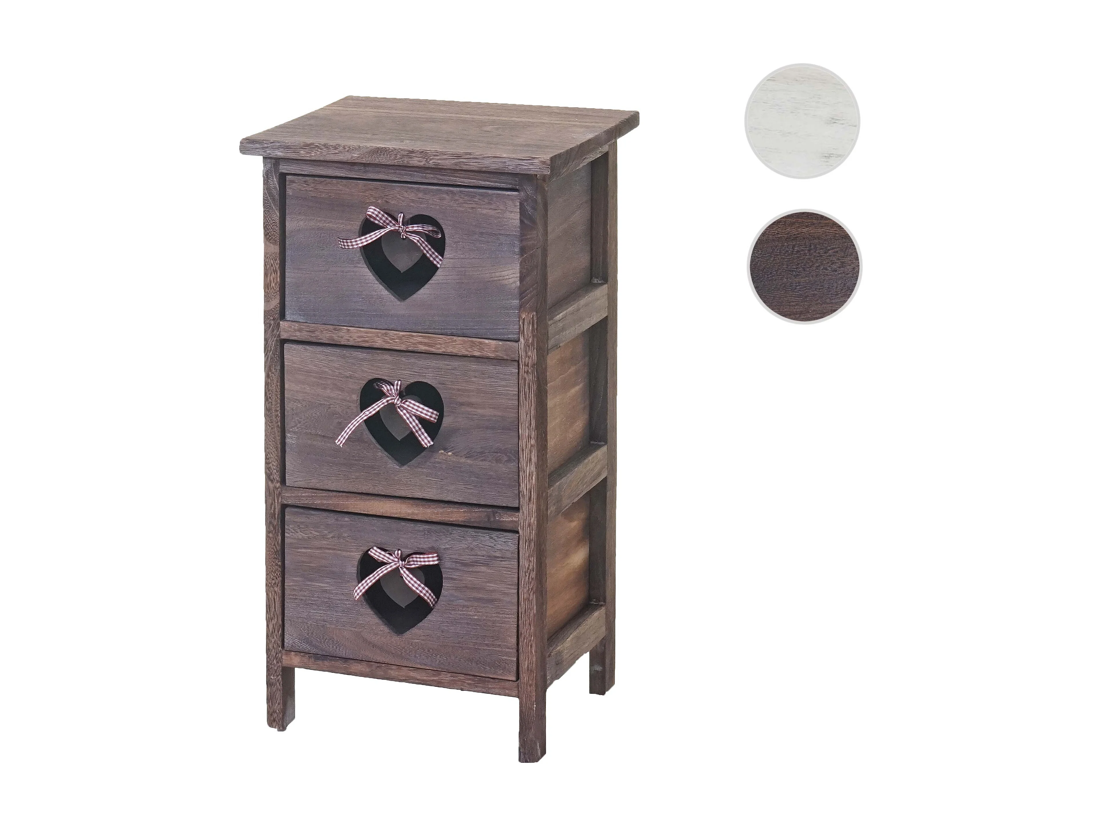 Kommode Forli, Schubladenkommode Schrank, 3 Schubladen mit Herzen 55x29x25cm, Shabby-Look, Vintage, braun