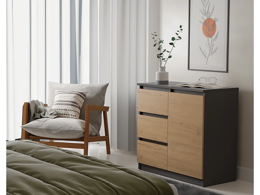 Komoda Malwa 1D3S | Antracyt/Dąb Artisan | 80x40x75 cm | 3 Szuflady, 1 Drzwi