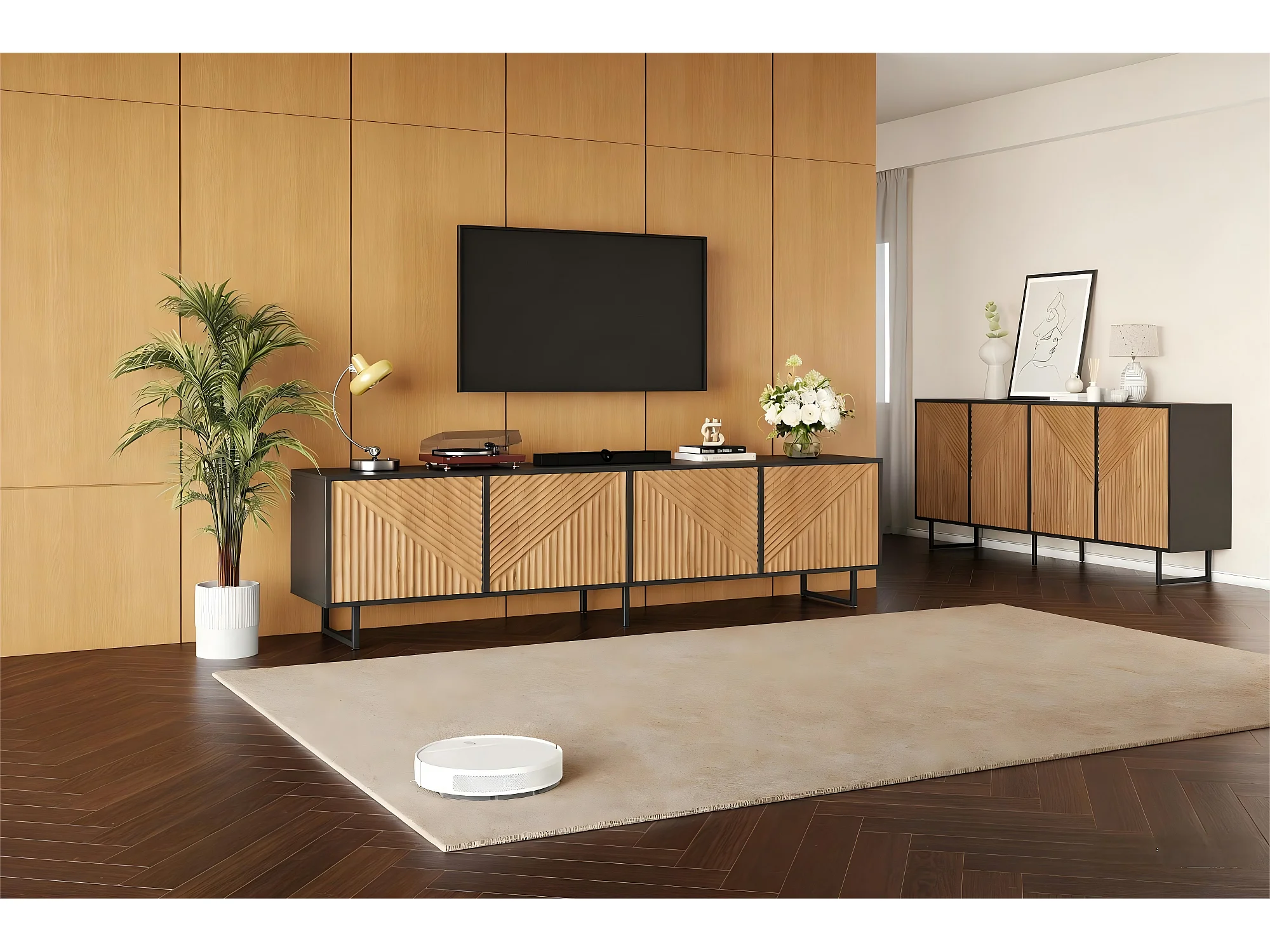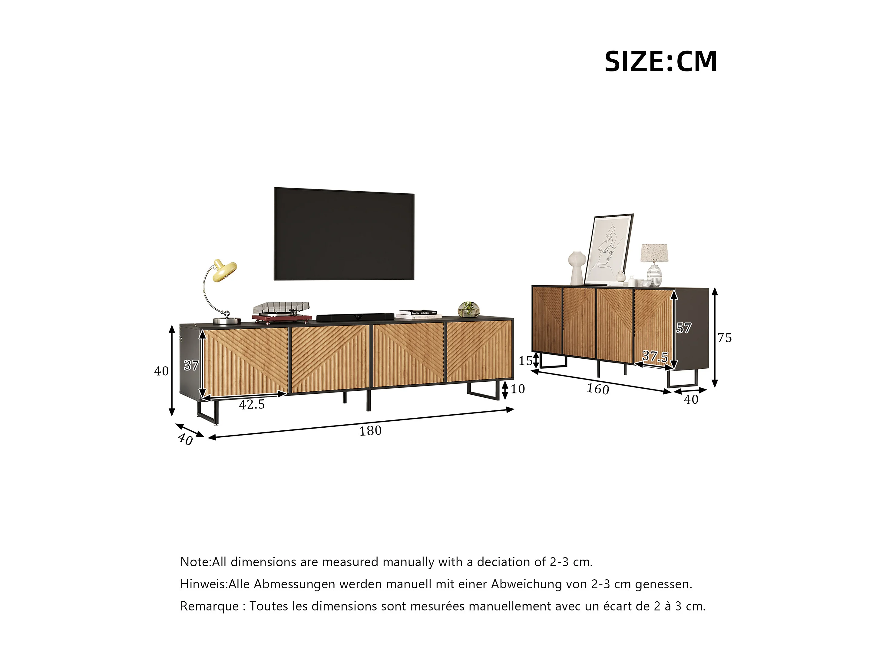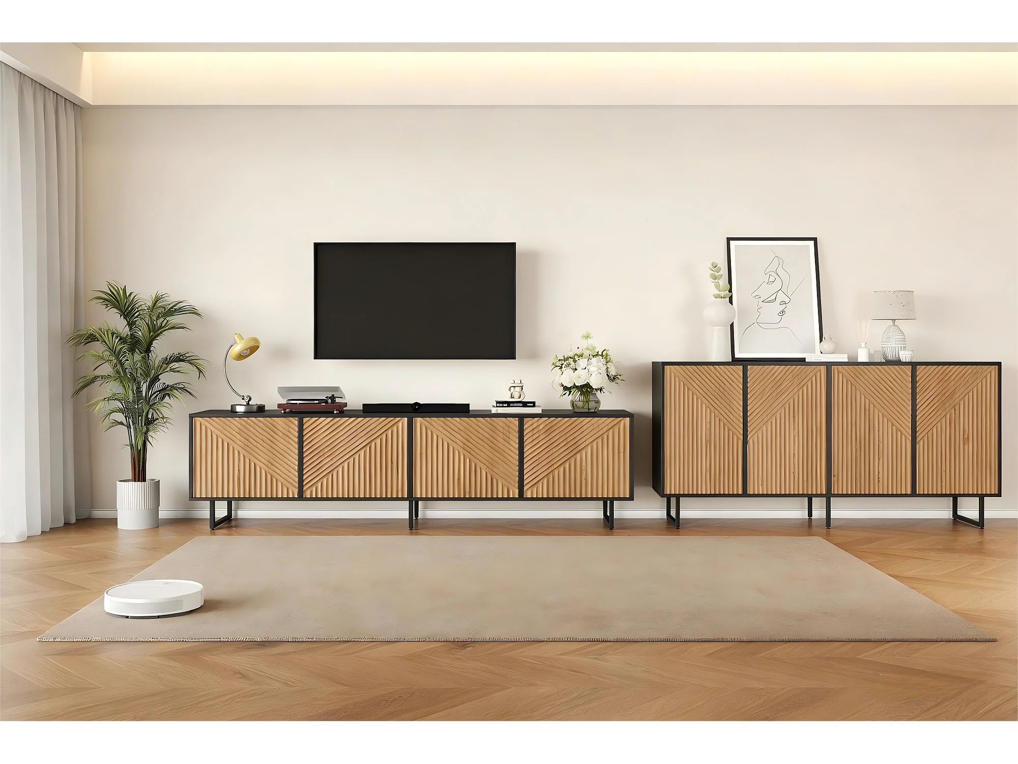 Komplettes 2-teiliges Wohnzimmer-Möbelset – bestehend aus 1 Sideboard und 1 viertürigem TV-Schrank – Spanplatte – natur