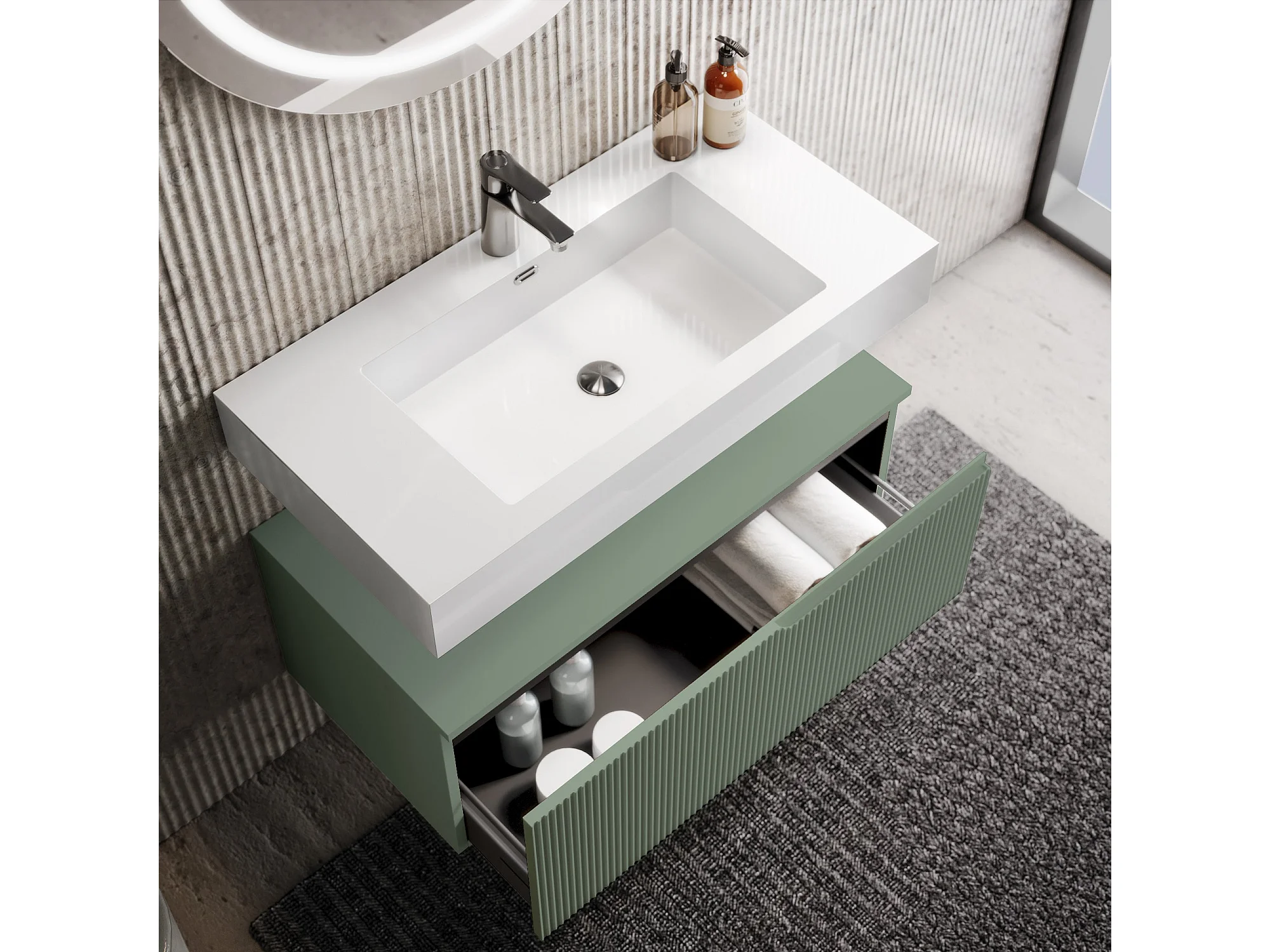 Komposition 3-teilig VENERE hochglanzweiß/salbeigrün