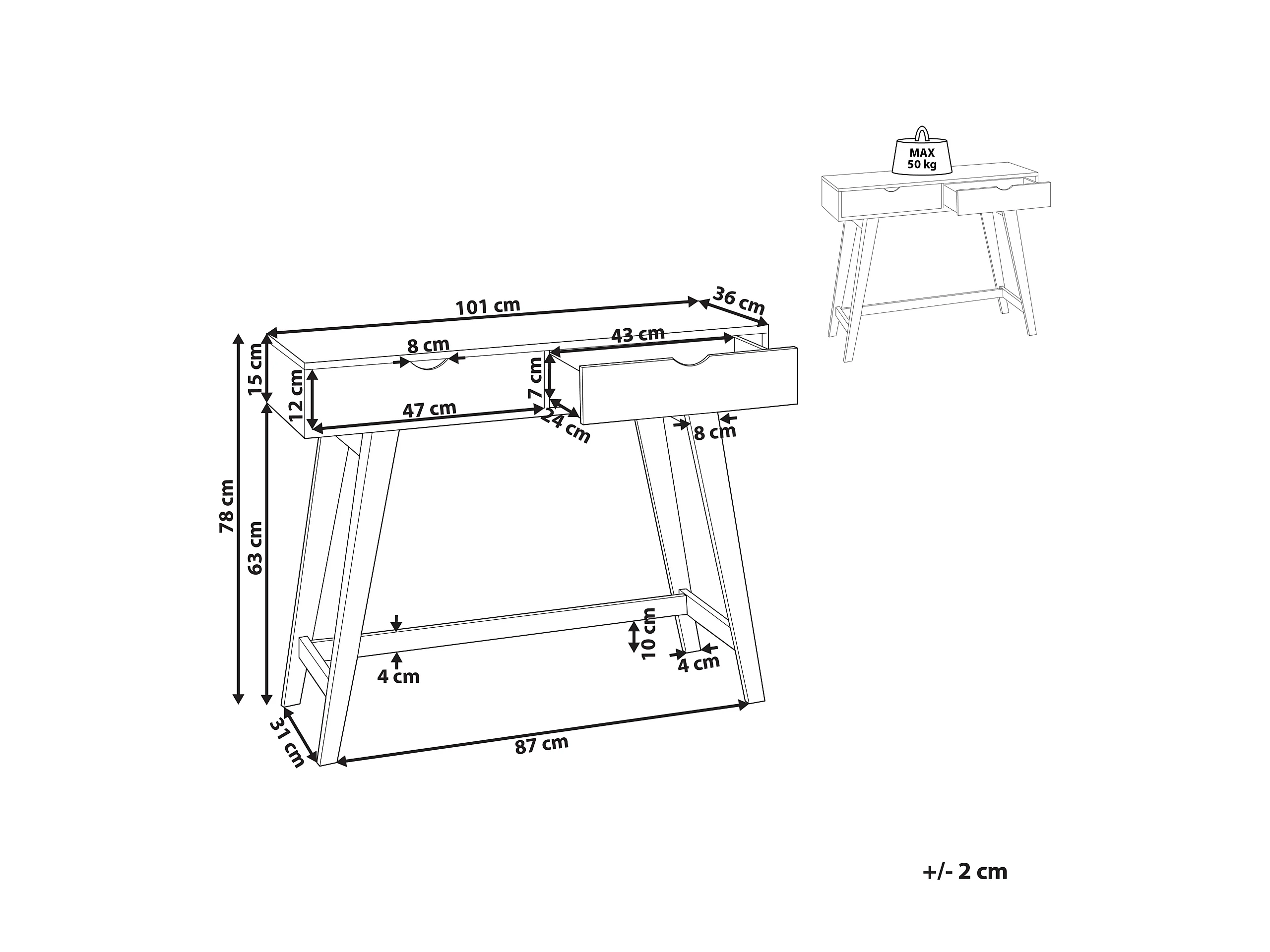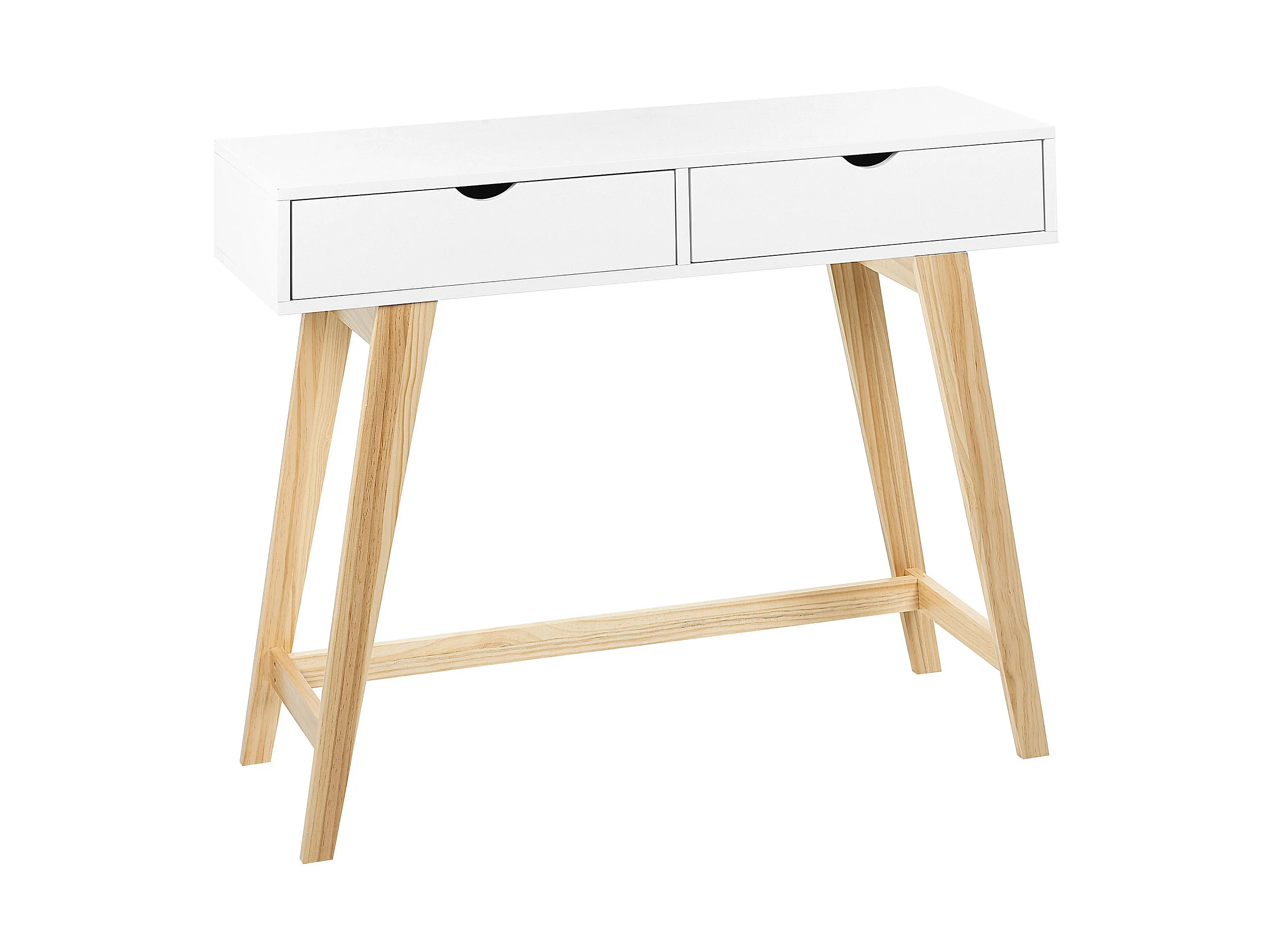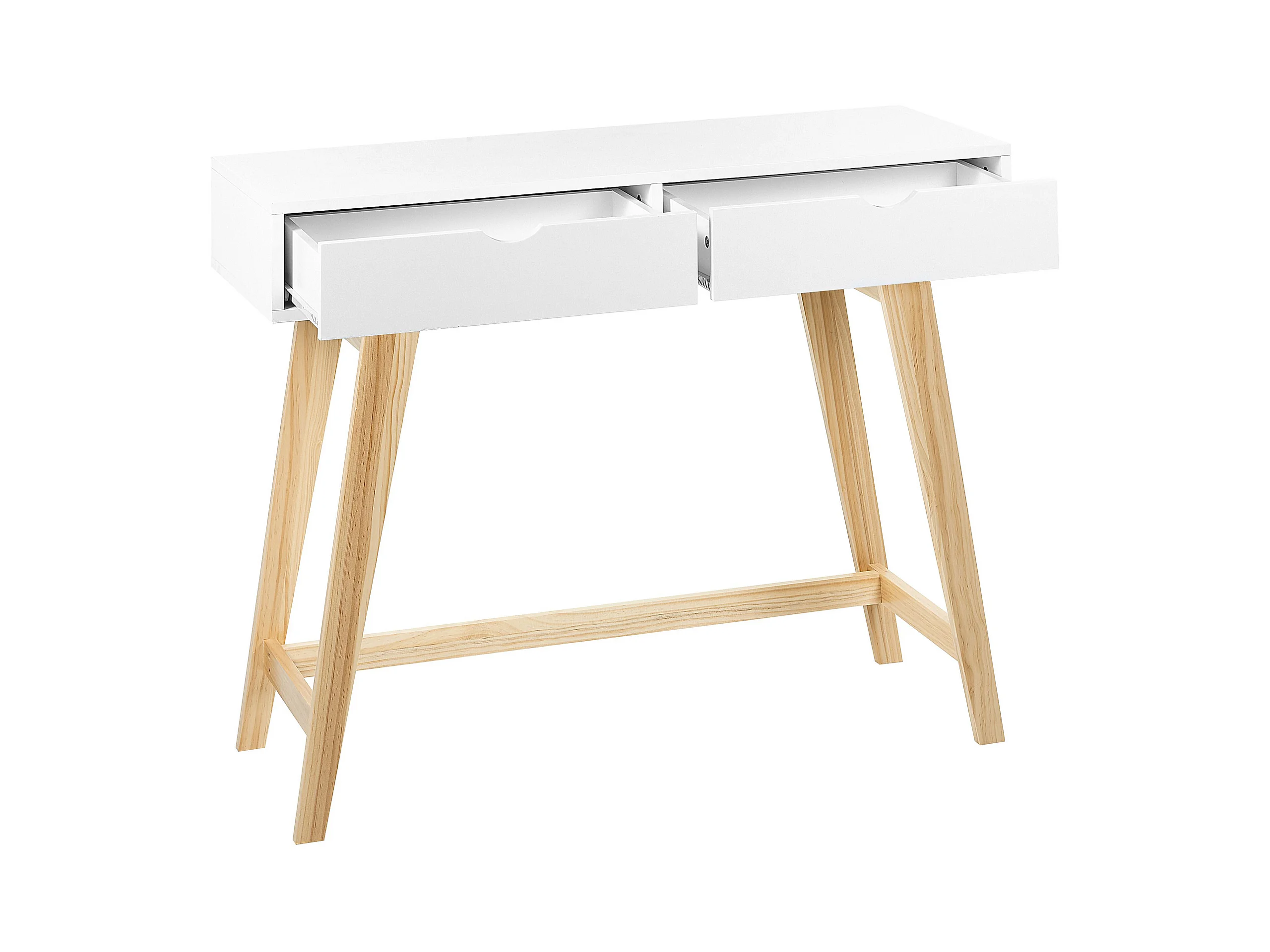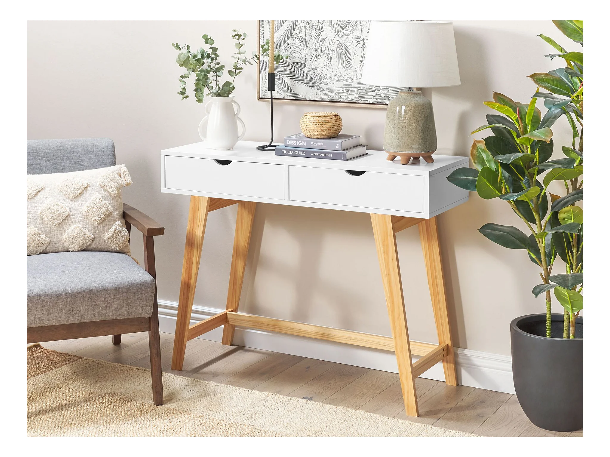 Skandinavien Konsolentisch 2 Schubladen Holzbeine Weiß mit hellem Holz Sully