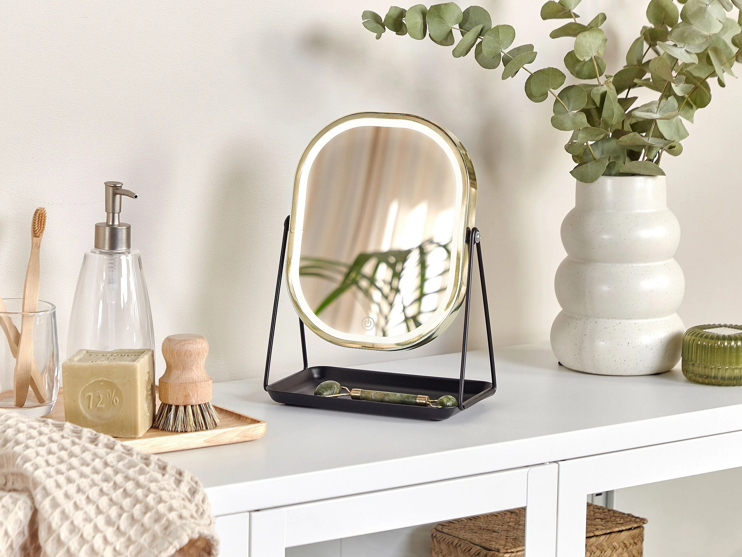 Spiegel für den Frisiertisch beleuchteter LED Schminkspiegel 20 x 22 cm Gold Dordogne