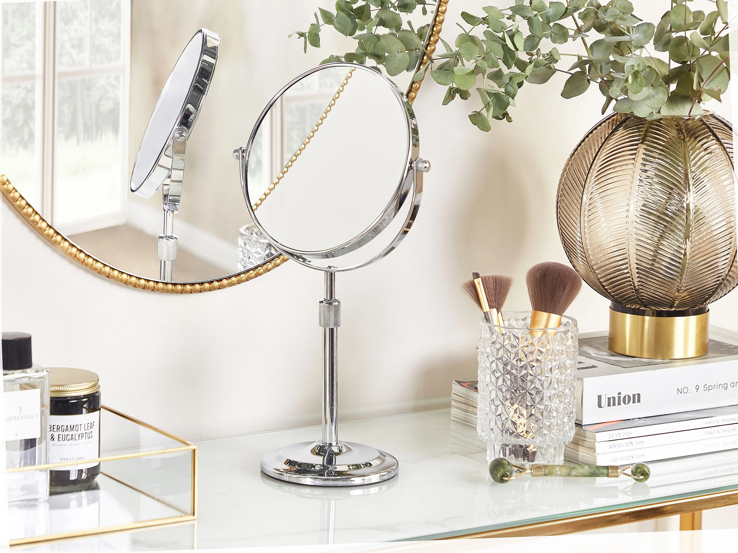 Doppelseitiger Tischspiegel Schminkspiegel mit Vergrößerung ø 20 cm Silber Averyon
