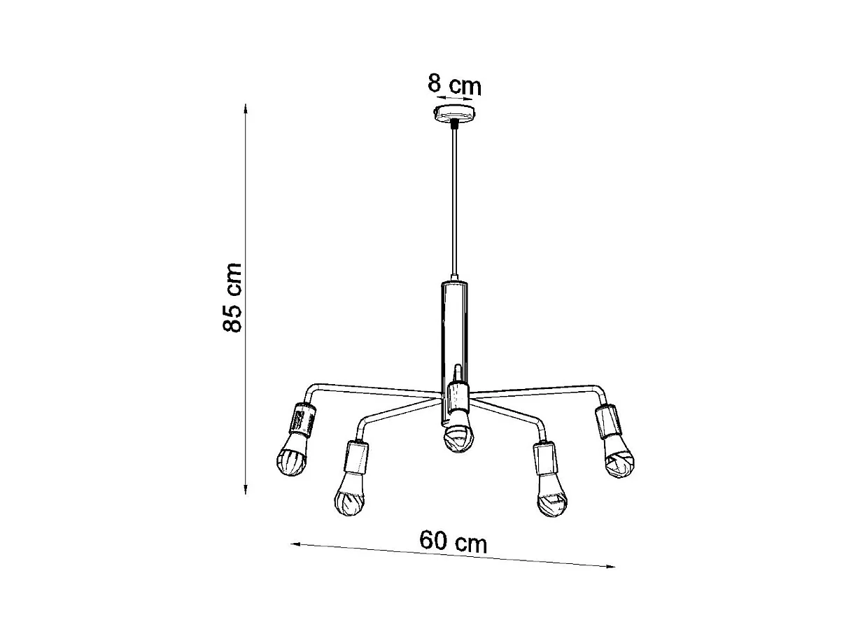 Sollux DUOMO - 5 licht Multi Arm Deckenanhänger Schwarz, E27