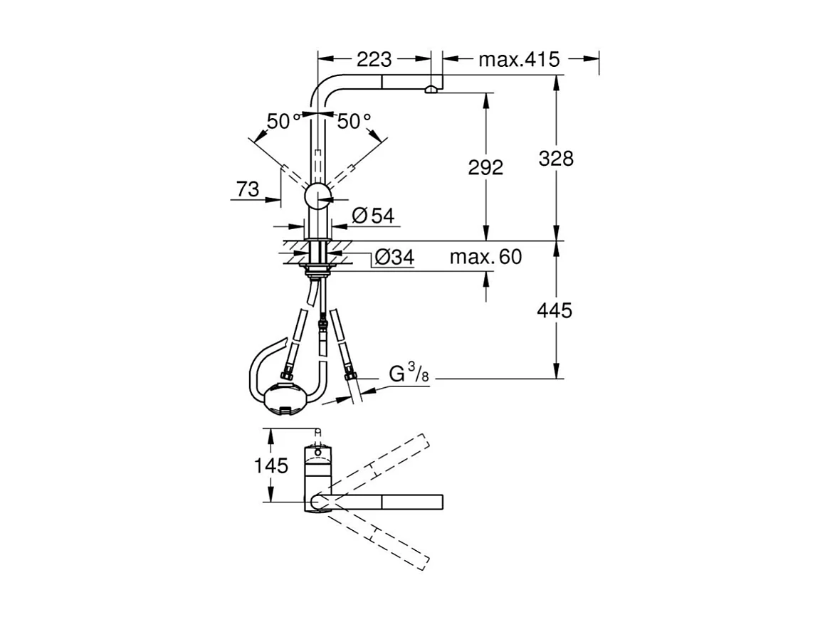 Küchenarmatur Grohe Minta mit Ausziehbarer Brause und L-förmigem Auslauf Chrom