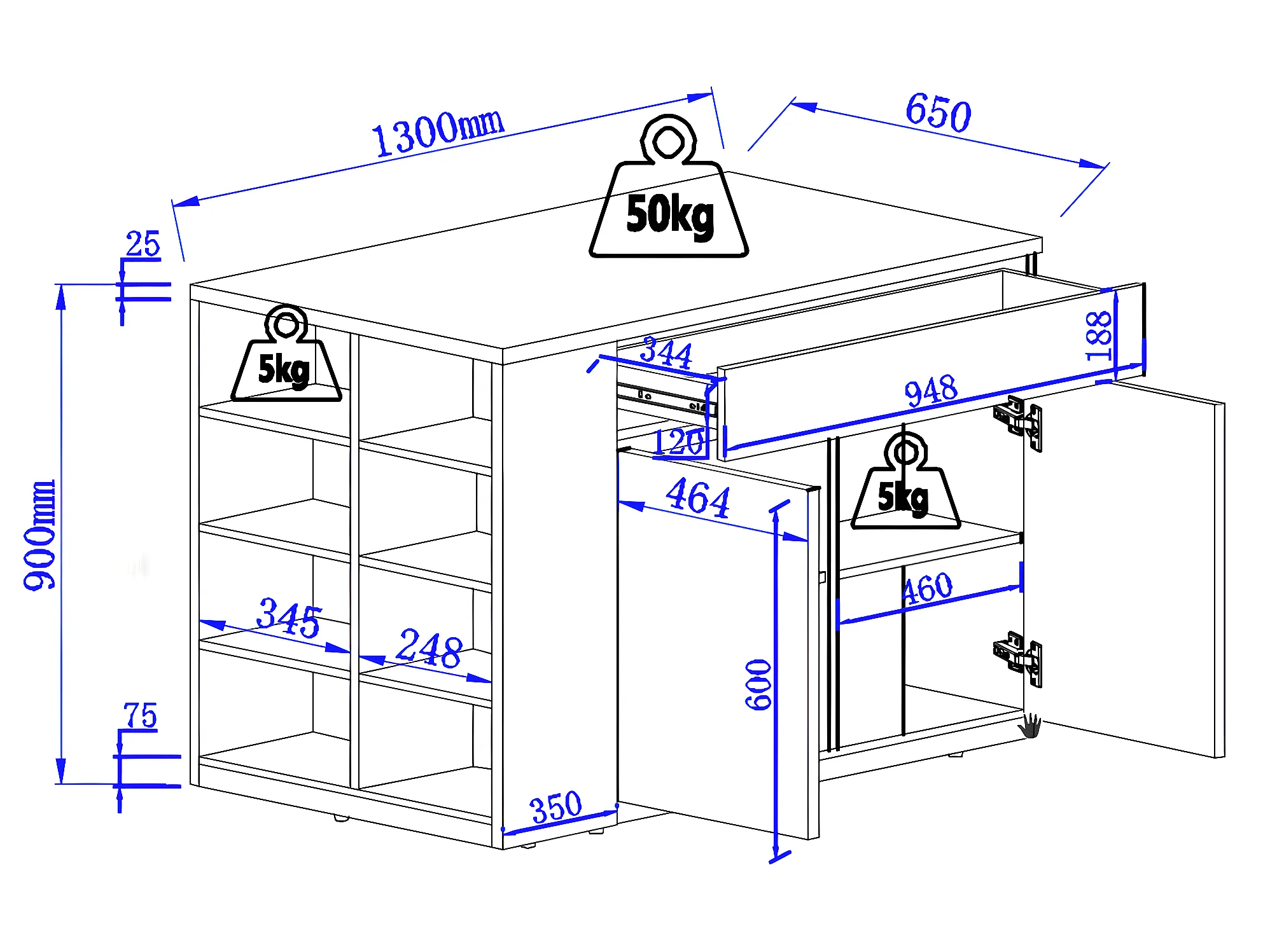 • Praktisch dank seiner integrierten Aufbewahrungsmöglichkeiten