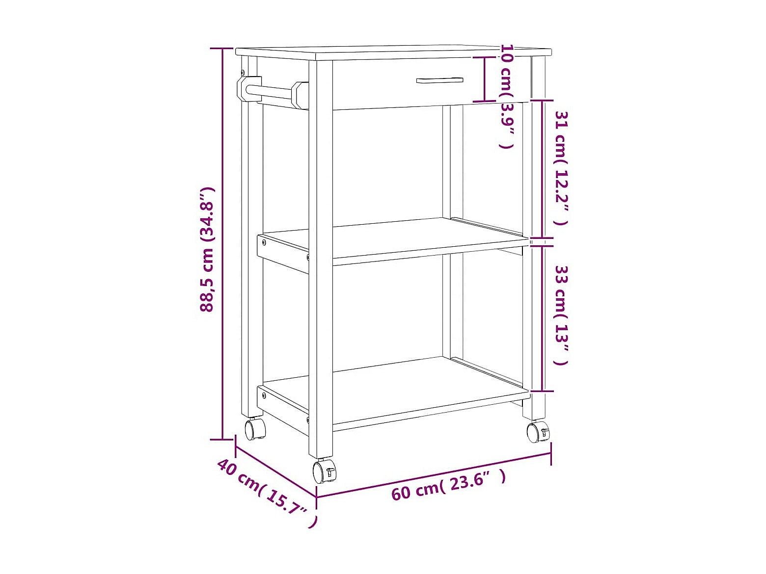 Küchenwagen MONZA 60x40x88,5 cm Massivholz Kiefer