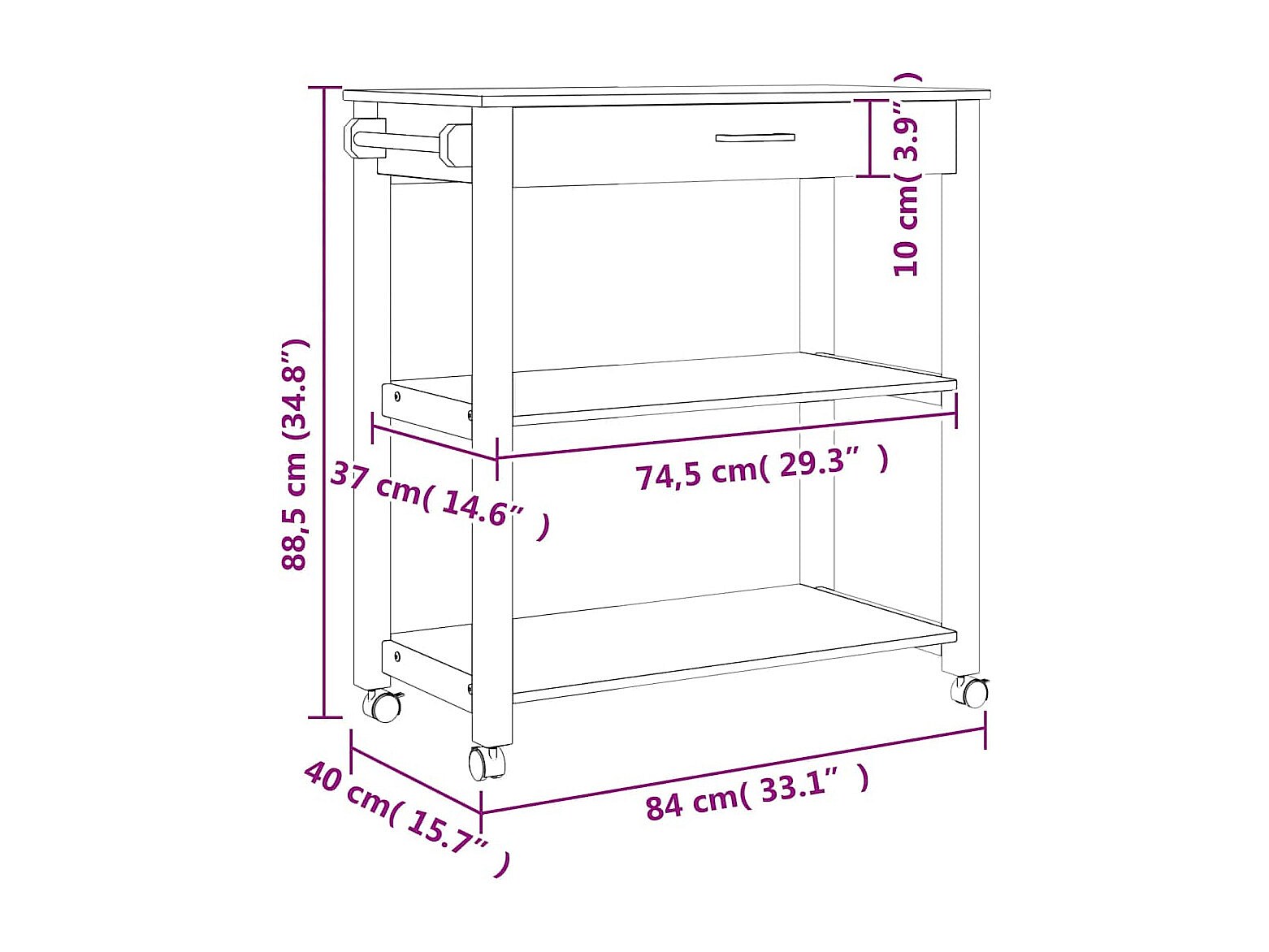 Küchenwagen MONZA 84x40x88,5 cm Massivholz Kiefer