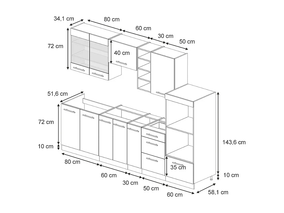 Singleküche weiß hochglanz/anthrazit 140x46x81.6 fame-line