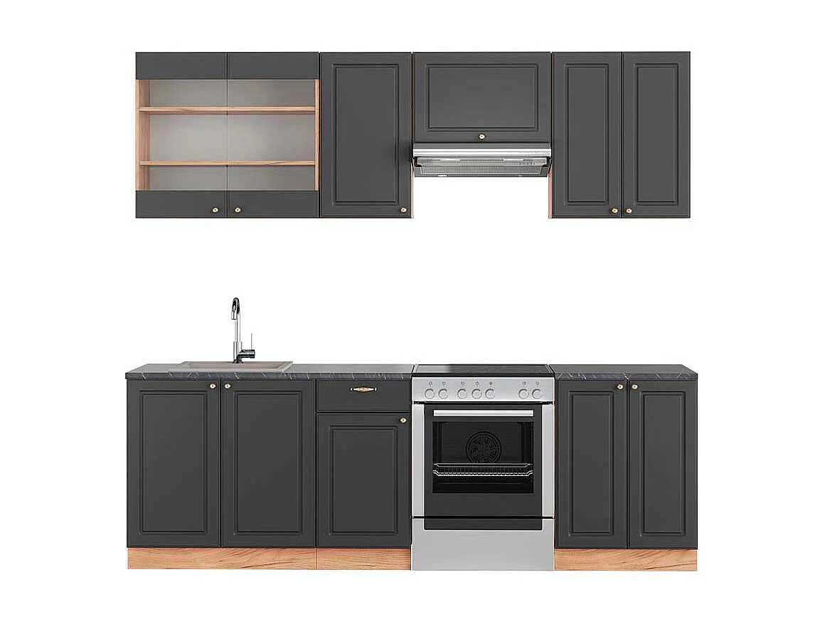 Küchenzeile anthrazit landhaus/goldkraft eiche 240x60x81.6 fame-line