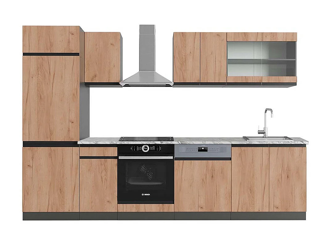 Küchenzeile goldkraft eiche/anthrazit 300x60x81.6 fame-line