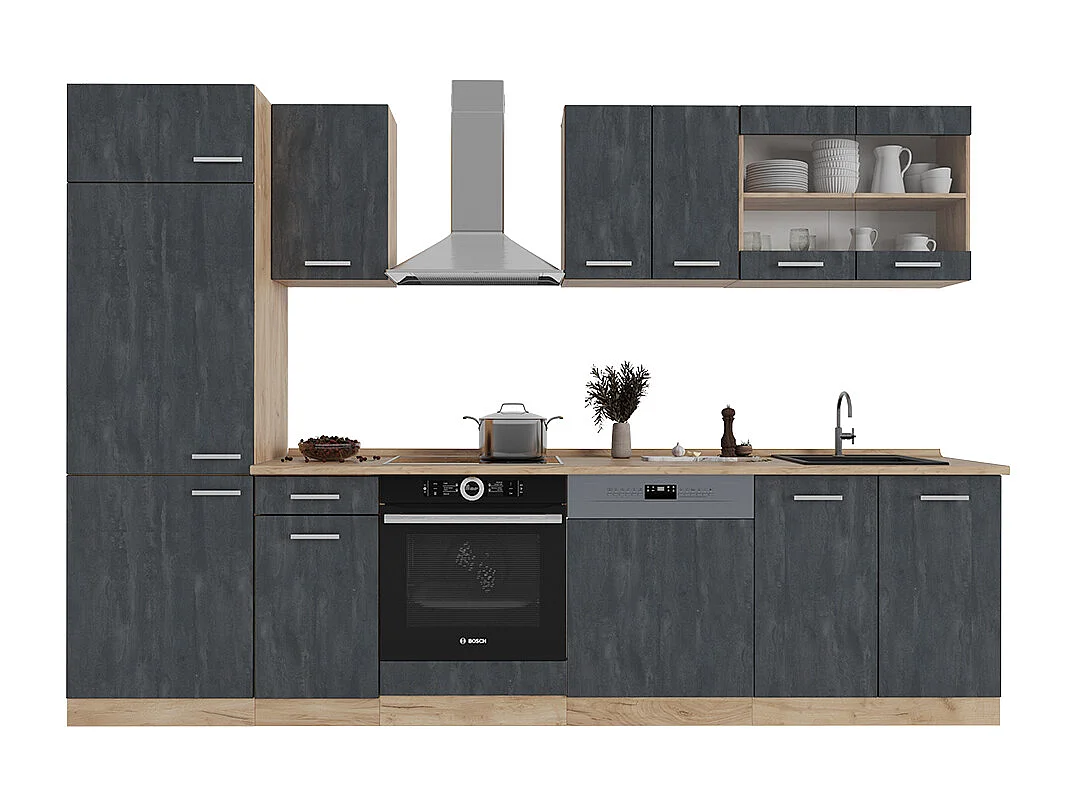 Küchenzeile schwarz beton/goldkraft eiche 300x46x81.6 r-line