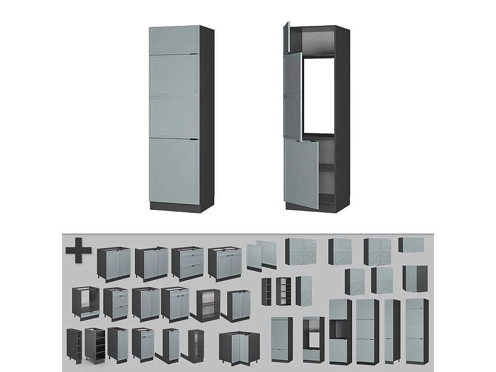 Kühlumbauschrank hellblau-grau 60x58.1x206.8 fame-line
