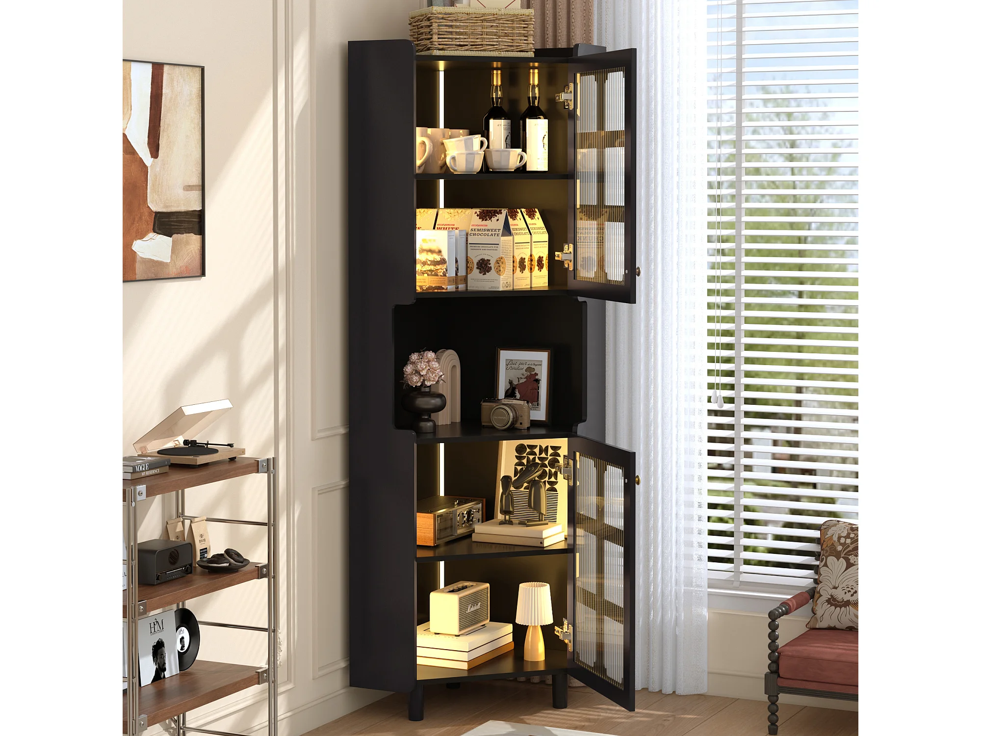 Lackierte Eckvitrine – 63,5 x 45 x 157,5 cm – mit LEDs, 2 Türen und Einlegeboden – MDF – schwarz