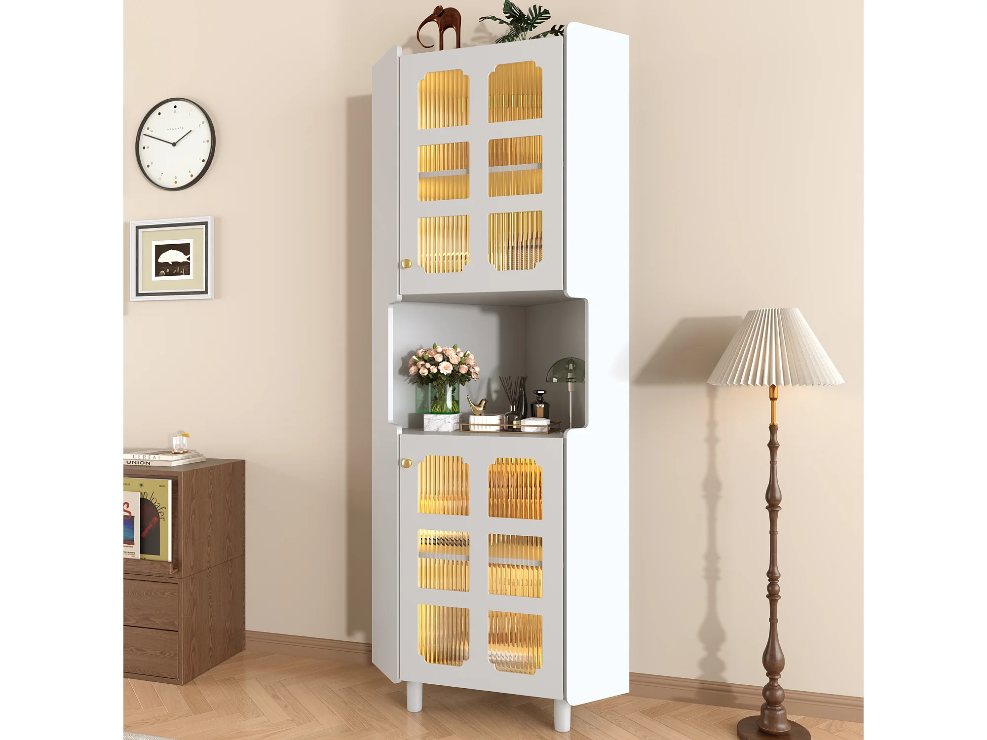 Lackierte Eckvitrine – 63,5 x 45 x 157,5 cm – mit LEDs, 2 Türen und Einlegeboden – MDF – weiß